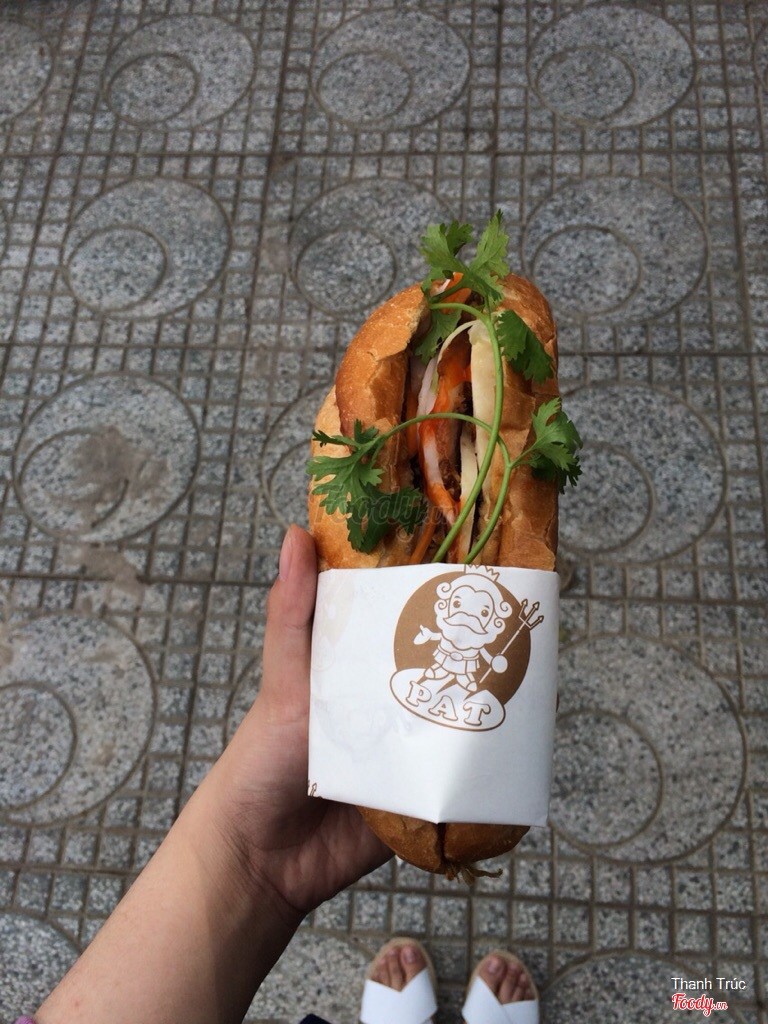 7.2Bánh Mì PATBánh mì ở đây ổ khá to, cầm nặng tay lắm luôn. Nhân ở bên trong rất nhiều vừa có thịt có đồ chua dưa leo hành ngò ớt và nước sốt. Mình ăn bánh mì xíu mại thấy quán bán xíu mại viên to và toàn thịt là thịt. Thấy menu có combo bánh mì và nước giá tầm 30-35k rất ổn vì mình ăn bánh mì xong rất khô và khát nước. Mình mua li đá xay to quá trời luôn nhắm chừng tầm 1l :( uống không hết xách về văn phòng. Quán có giao hàng nữa đỡ mắc công đi xa cho mệt. ...Xem thêm