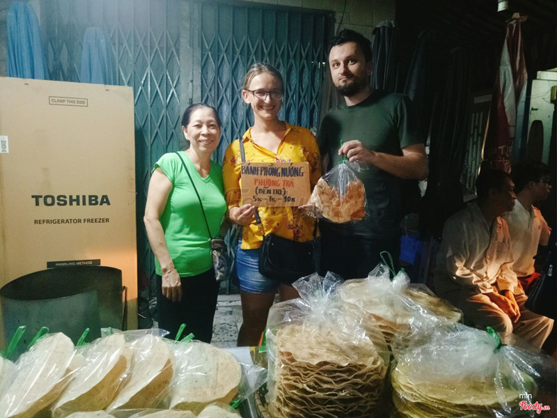 10Bánh tráng nướng ngon nhất quả đất!Cô bán hàng dễ thương, kể chuyện nhà làm bánh tráng ở Bến Tre mấy đời rồi. Bánh tráng vị rất ngon. Mình mua bánh sống để mang đi nước ngoài và mua ít bánh đã nướng để ăn luôn nữa vì nhìn quá ngon!! ...Xem thêm