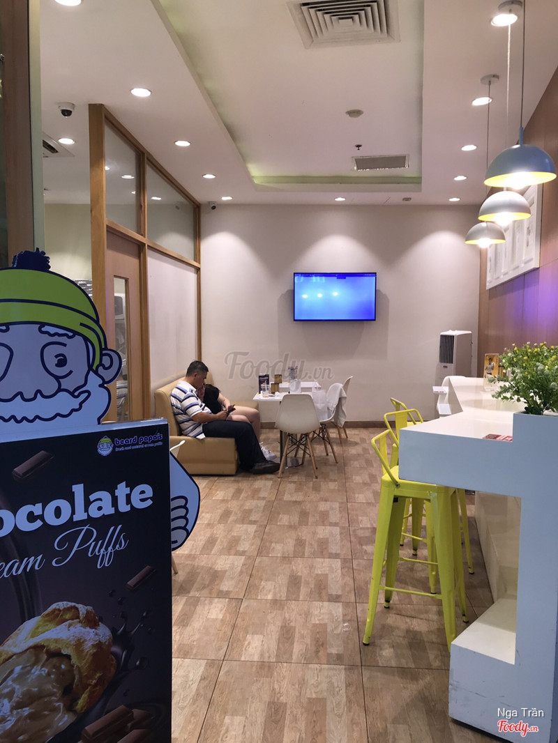 8.0Beard Papa’s - Vincom CenterTiệm bánh nằm ở tầng b3 của vincom lê- thánh- tôn-, không dễ tìm lắm vì quán khá nhỏ, chỉ có mặt bằng để quầy chế biến và tủ bánh, chỗ ngồi lại thì chỉ có 1 bàn nhỏ thui, thích hợp nhất là mua mang đi, mình thấy khung giờ chiều hay giờ trưa thì hay có nhân viên văn phòng ở đây ghé mua để ăn trưa á. Bánh cũng có nhiều loại nhân như kem sữa, matcha, chocolate, size bánh và vỏ bánh cũng đa dạng nữa. m order bánh su kem premium kem sữa, bánh cũng to vừa phải, còn ấm ấm lúc nhận bánh, bánh ăn ngon, vỏ mỏng mà giòn nhẹ, sốt trong bánh cũng ngon, béo béo ngọt ngọt. ...Xem thêm