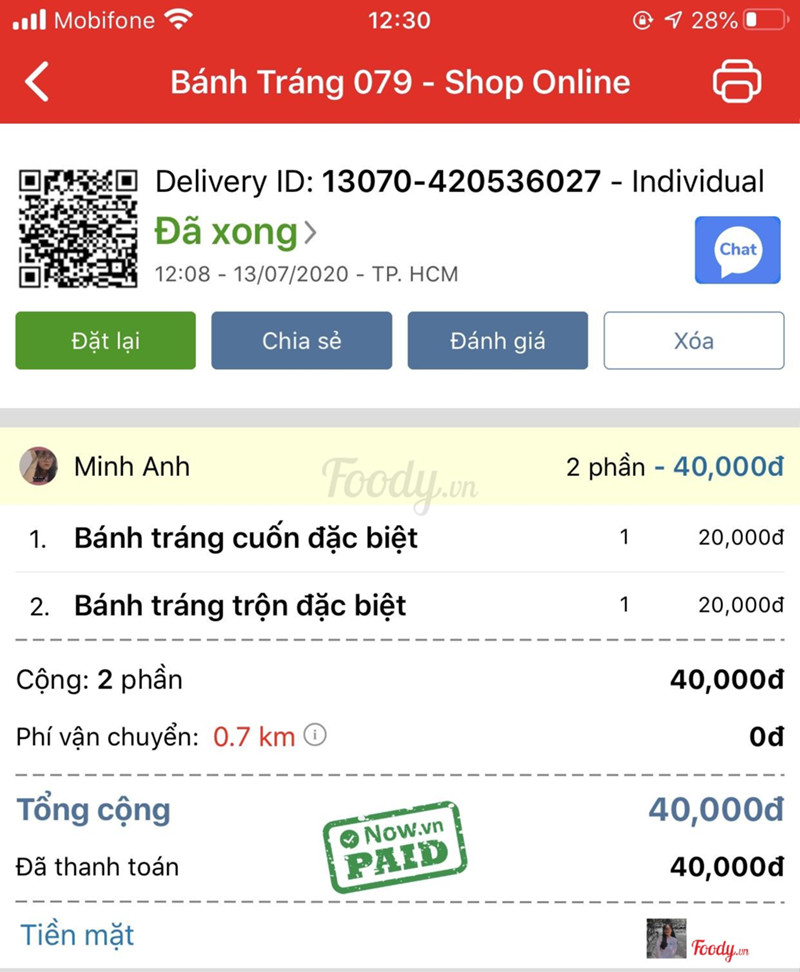 8.0Bánh Tráng 079 - Shop OnlineLướt một vòng foody thì phát hiện quán này gần nhà nên đặt thử. Phải nói là một phần siu nhiều và siu lớn, bánh tráng trộn đặc biệt vừa đủ cho hai người ăn. Giá cả thì vô cùng hợp lý cho một phần bánh tráng như vậy. Bánh tráng cuốn hơi cay xíu so với khẩu vị của mình và bánh tráng trộn thì hơi ngọt. Nhưng chung quy lại thì rất ok và hợp túi tiền. Sẽ đặt thêm nhiều lần nữa. ...Xem thêm