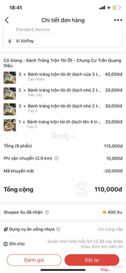5.0Nhận không đúng như đặt hàngTôi mua 3 bịch lớn tổng thiệt hại là 75k tiền ship 20k vậy tổng tôi trả 95k Nhưng khi nhận hàng vì không có nhà nên nhờ người nhà nhận dùm và nhận được 6 bịch nhỏ, không có trứng và không có nhãn hiệu gì về sản phẩm. Vậy do app fooddy hay do nhà cung cấp sản phẩm bên Cô Giang bánh tráng trộn đây. Tôi thật sự thất vọng về việc này. Người quản lý app cũng như nhà cung cấp nên xem lại cách làm ăn. Như vậy chắc chắn app hoặc nhà cung cấp sẽ là người bị thiệt hai Đây là hình tôi đặt và nhận được Hãy xem kỹ và nhận xét nhé ...Xem thêm