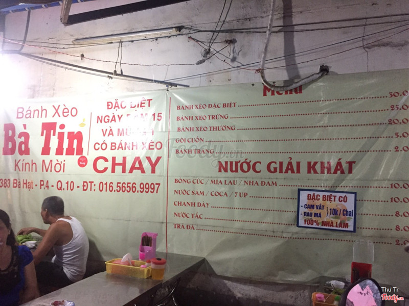 6.4Bánh Xèo Bà TinBánh đc cái bự thôi chứ nhân c ít Vì giá có 20k nên cũng ko đòi hỏi Nhưng bánh dầu nhiều qá. K có ráo dầu nên bánh dễ mềm Bánh ko giòn Dc cái bột bánh béo béo thơm cũng tạm chấp nhận Bàn ghế cũng 5-6 bàn gì đấy Bánh thường 20k Muốn ăn bánh tráng tính riêng 2-3k 1 sấp thì phải ...Xem thêm