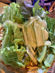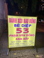 6.8Bé Diệp - Bánh Xèo Rau RừngHôm nay vợ chồng chị bạn dắt mình đi ăn, hai vợ chồng khen chỗ này ngon và nước mắm pha đậm đà. Họ ăn vài lần ở đây rồi nhưng mình mới ăn lần đầu. Quán nằm ngay gần đầu đường cầu vượt, khúc bùng binh***nhưng quán nằm bên phía Gò Vấp. Lúc đến khoảng 8h tối hơn thì bột vừa hết, phải đợi 10 đến 15 phút xay bột xong họ mới đổ bánh xèo và bánh khọt cho tụi mình. Bạn mình nói bánh xèo hôm nay chưa được giòn như mọi khi, quán nói chắc do gạo còn mới. Bánh khọt có vẻ lớp dưới bị cháy quá. Ăn cũng được. Mình mê rổ rau ở đây có đủ các loại rau rừng từ lá cóc, quế vị, lá cách, ...Rau tươi và rửa sạch sẽ. Mọi người phục vụ của quán rất vui vẻ và nhiệt tình. Chỗ ngồi dọc vỉa hè của đại lộ***cho nên rất thoáng nhưng vẫn có cả chỗ ngồi trong nhà, kê được 3,4 cái bàn inox cao thôi. ...Xem thêm