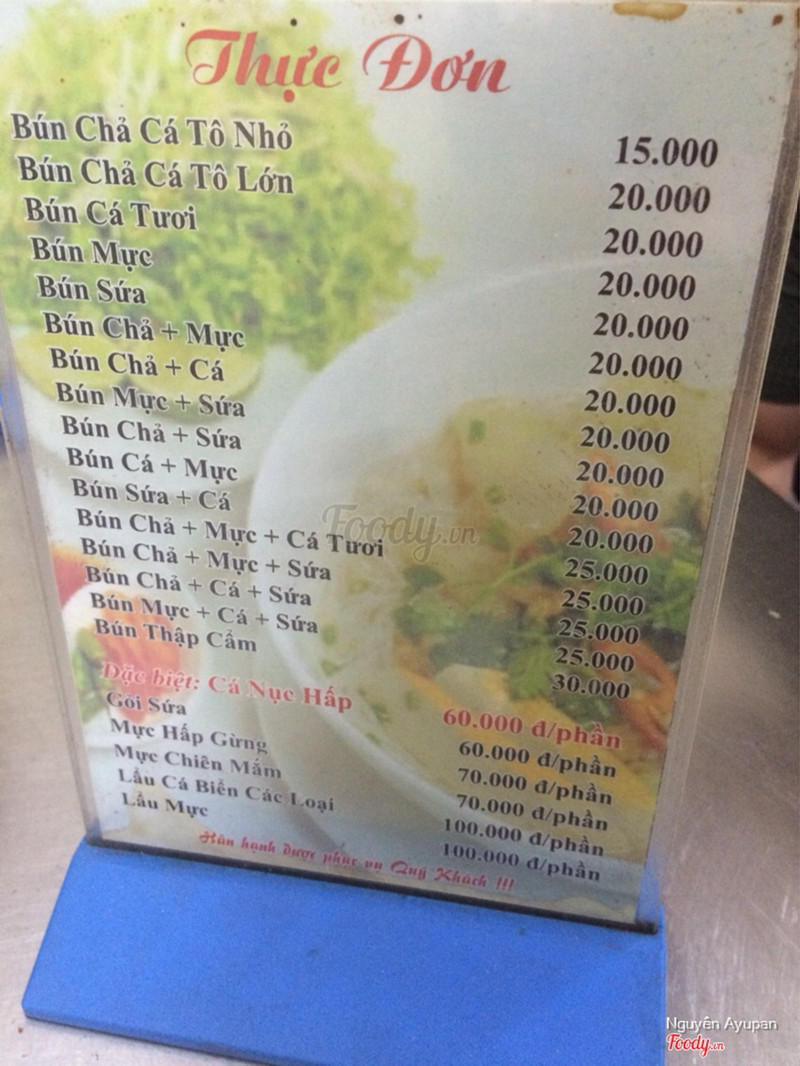 7.4Bún chả cá bình thườngĐọc review các bạn nói quán phục vụ dở tệ, mình không biết sao, chỉ tiện đường thấy ghé vào ăn thôi. Lên đây tính bình luận mới biết. Vì mình đi 11h chưa tới giờ ăn nên quán có đúng một mình mình, chủ quán và nhân viên cũng hỏi han đầy đủ. Nhưng đáng nói là món ăn. Nước dùng nhạt, cá hơi tanh, chả cá bình thường. Riêng sứa thì ngon. Quán có bảng giá rõ ràng, trên bàn để sẵn bình trà nóng. Mình gọi bún cá chả cá sứa 30k. Nữ ăn thì vừa, nam ăn thì chắc ít vớt cái hết sạch. Nước tương ớt chua ngọt ăn okie. ...Xem thêm