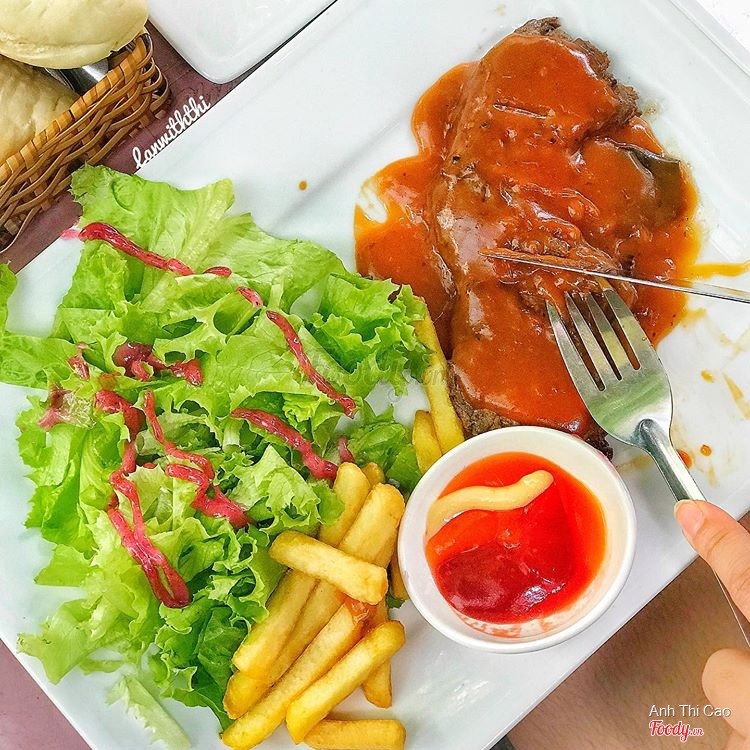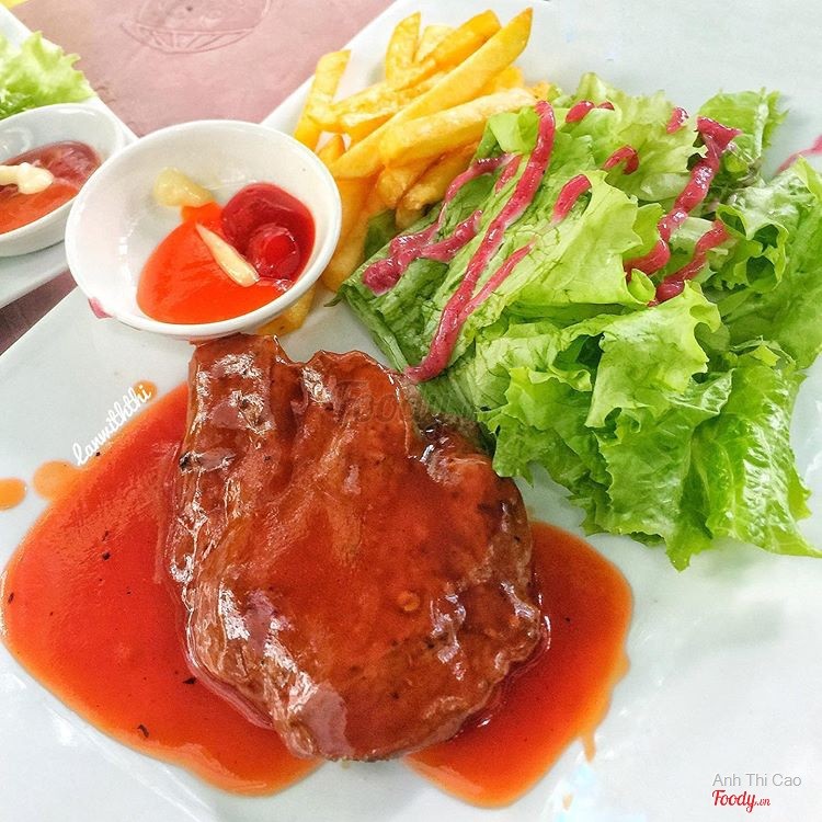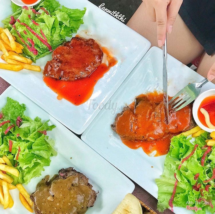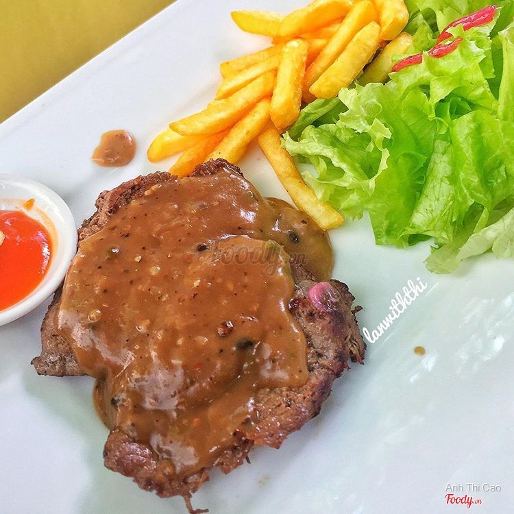 8.0Beefsteak 100gram - Nguyễn Gia ThiềuNghe 39k mà bán tín bán nghi phải đi thử coi phải sự thật không nè Ở đây bán Steak siêu rẻ luôn nha: 100gr 39k, 150gr 55k thôi à, mình gọi 3 phần 100gr, miếng steak cũng dày chứ không phải mỏng lét đâu nha, ăn vị khá giống ở TiTi cả cách trình bày và sốt đều giống đến 90% luôn đó nhưng phiên bản rẻ hơn nha, đúng kiểu dành cho học sinh sinh viên luôn, mình order 3 lọai sốt là sốt chua cay, sốt bbq và sốt tiêu. Mình thích sốt BBQ nhất, sốt tiêu mình không ăn được nhưng nghe bạn nói ăn cũng ổn, còn sốt không thích nhất là chua cay, kiểu sốt giống tương ớt pha với tiêu thôi, ăn cũng được thôi nhưng không thấy gì đặc biệt hết nha, best nhất vẫn là bbq hen. Khoai và rau cho đầy đủ, free luôn trà đá, bánh mì. Steak ngon nhưng làm chín quá nên hơi dai một tẹo nghen. Vì giá rẻ như vậy nên quán vô cùng đông đúc luôn, mình đến tầm 12h30 là nghẹt bàn từ trong nhà ra trước hè, sinh viên hay nvvp ngập quán, gửi xe đối diện tốn 5k nghen. Đối với mình với mức giá 39k mà được một dĩa steak đầy chất lượng là quá rẻ luôn đó, vì giá rẻ nên không đòi hỏi quá cao như phòng lạnh hay gì đâu nha. À dù đông nhưng không phải đợi quá lâu đâu nha, tầm 10-15' là có đồ ăn rồi nè Ai thích kiểu ngon rẻ lề đường như mình thì có thể đến đây thử --------- 🌟Đánh giá: 3,75/5🌟 📍Beefsteak 100gram, 2/108 Nguyễn Gia Thiều, Q3 💸39-55k ⏰6:00 -22:00 ...Xem thêm