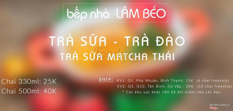 8.0Bếp nhà Lâm BéoThấy quán trên Facebook nhìn hình khá hấp dẫn nên mình cũng tò mò order thử , do khuyến mãi khai trương nên được freeship , thành ra mình rủ rê mấy đứa bạn order chung luôn cho nhẹ túi . Quán tự làm trà sữa , trà đào , tự làm luôn cả trân châu đen , trân châu trắng với thạch Phô mai nên khá an tâm . Vị trà rất thơm , béo nhẹ sữa , không quá ngọt ngắt . Mình khá thích rau câu cà phê , nhân phô mai béo béo ngon lắm . Trân châu dai ngon . 1 chai khá to , 330ml (25k) còn chai nửa lít 40k khá rẻ . ...Xem thêm