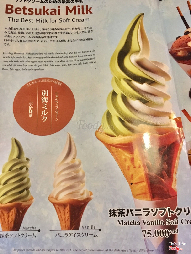 7.8Betsu Milk - Matcha & SweetsVanilla soft cream 75k/ cây giá cao nhưng xứng đáng nha. Kem ngon mịn mà không bị ngọt. Vị ngọt nhẹ nhàng béo béo của sữa tươi ăn thấy khác biệt hơn những loại kem mà mình đã ăn. Có code free nên ăn thử trải nghiệm chứ bình thường giá này thì không có tiền ăn hoặc có những đợt giảm giá cũng ok. Nhân viên phục vụ nhanh và vui vẻ dù mình dùng code free nhưng các bạn nhân viên rất dễ thương. Gian hàng kem nằm ngay phía ngoài của khu ẩm thực odeo allay bên tay trái gần thang máy khu B nha. ...Xem thêm