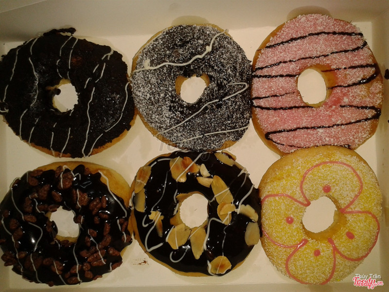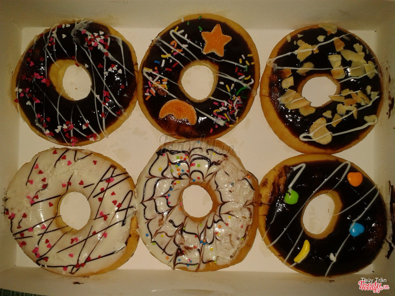7.8Bánh ngon hơn mình tưởngTiệm bánh dạng take away, có tủ trưng bày ngay mặt tiền rất dễ chọn. Tuy nhiên số lượng bánh chưa được xôm tụ lắm. Bánh có nhiều vị lạ như dứa, sầu riêng,... Khi mình hỏi khách thường mua vị nào thì chị bán hàng nói là socola đen, socola trắng và dâu ^^ Mình chọn một bé socola. Cách trang trí bánh nhìn chung không hấp dẫn lắm nhưng bánh lại rất ngon, mềm, độ ngọt vừa phải. Rất hợp khẩu vị. Giá cho các loại donut là 16k, cũng vừa tầm với thời giá hiện nay. Mình mua bánh trong khung giờ 13:30 - 15:30 được giảm 50%, còn có 8k thôi hehe. Ngoài ra khung giờ buổi sáng cũng được áp dụng mà không nhớ rõ thời điểm lắm. Phục vụ nhiệt tình, dễ thương, biết nói tiếng Anh sơ sơ luôn đó (thấy giao tiếp bán hàng cho một ông khách nước ngoài). Hehe, chắc chắn quay lại! ...Xem thêm