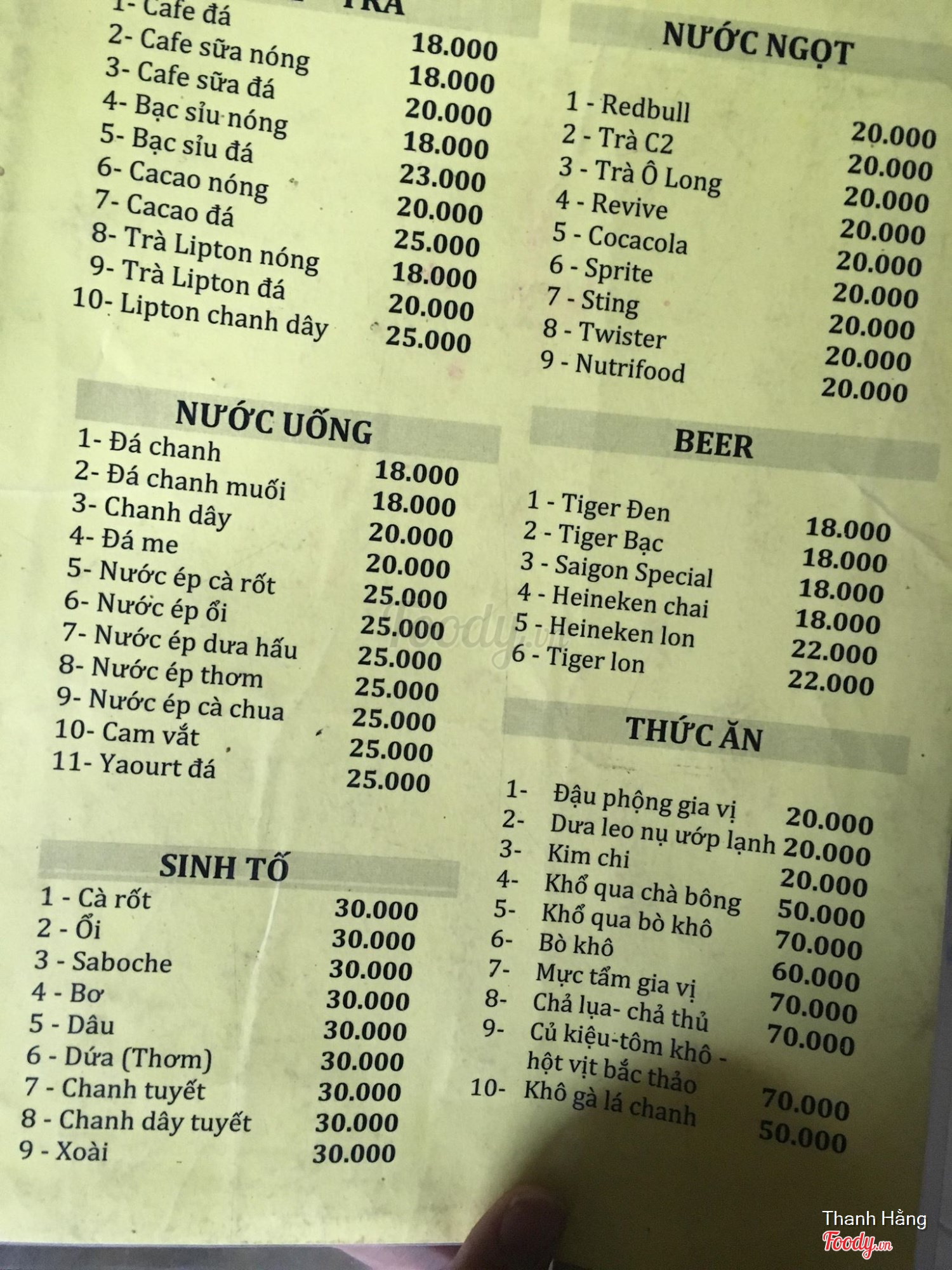Ghi chú đặt bàn