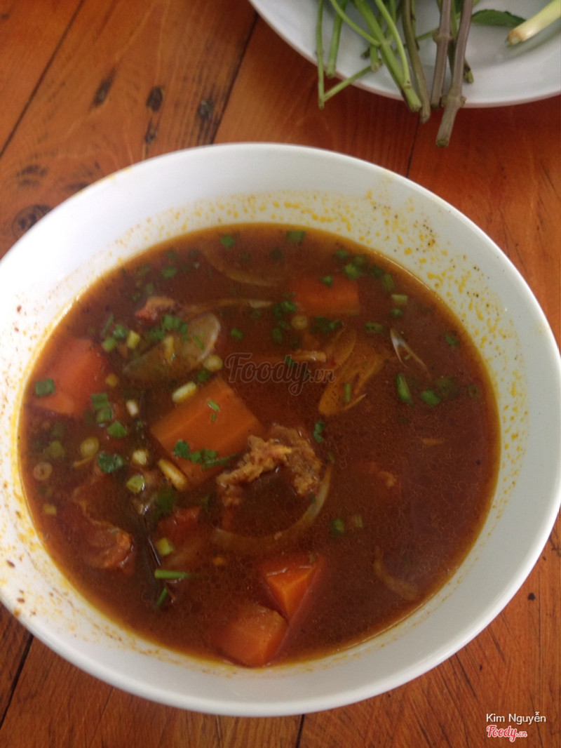 6.4Bò khoBữa đấy đi nguyên đám 10 người, khoảng gần 10h trưa rồi. Bò kho lèo tèo vài thứ, chủ yếu là nước, bạn mình dùng hủ tiếu bò kho mình thấy cũng ít, đồng giá 20k/tô. Vị cũng được, có trà đá, sữa đậu nành. Ngồi trong nhà có quạt, bàn gỗ đàng hoàng, có ghế nhựa phía trước sân nữa. ...Xem thêm