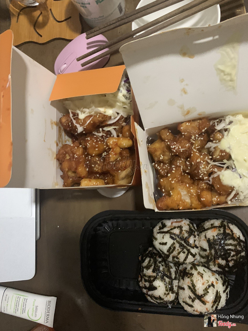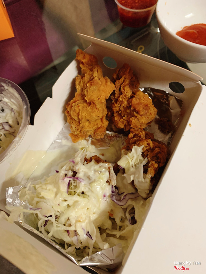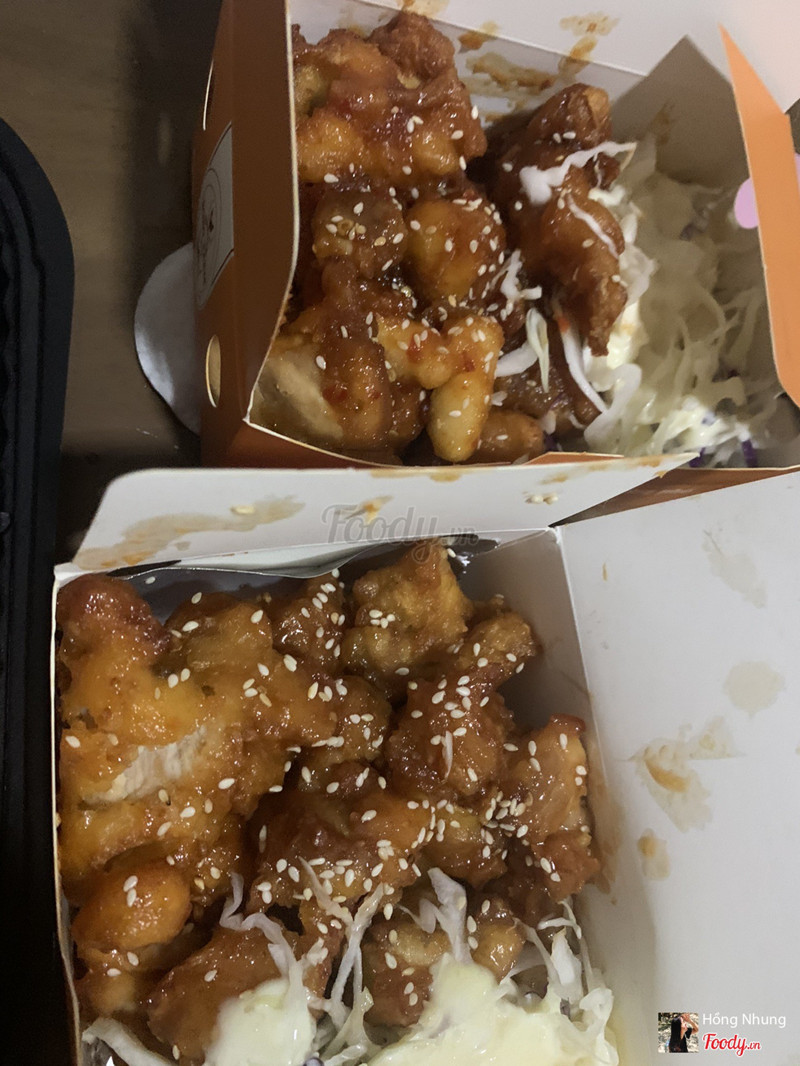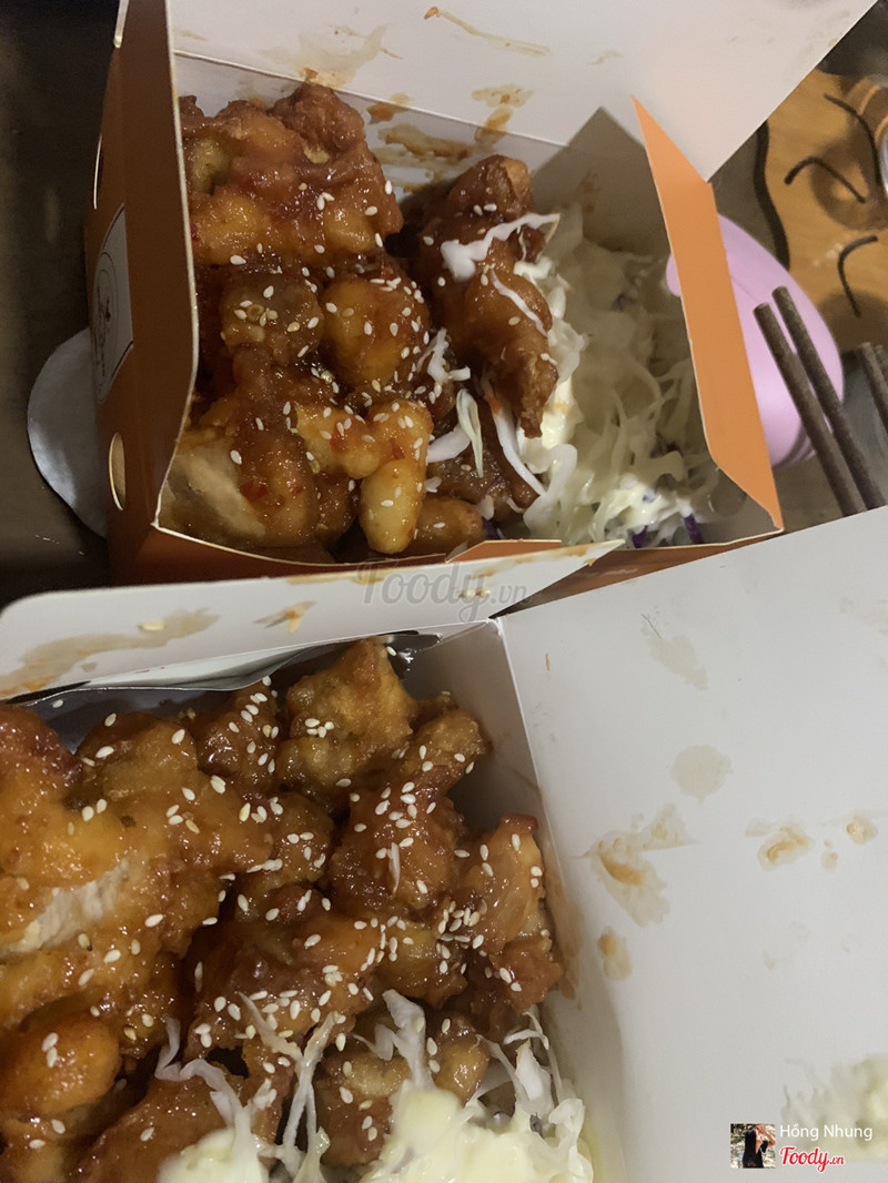 8.0Ăn tiếp gà sốt cay thấy ngon nên review tiếp nèHồi đợt mình bị ghiền gà rán nên hay ăn gà quán này hoài luôn, lần trước ăn gà sốt mật ong thấy ngon quá nên lần này đặt tiếp gà không xương sốt cay ăn thử. Giá 60k thôi mà hộp nhiều ơi là nhiều, chất lượng lắm luôn nha, gà nhiều, sốt cay the the kích thích vị giác lắm, thơm và đã ăn không bị ngấy, hơi cay xíu mà ăn dễ ghiền lắm, có thêm tokbokki ăn kèm, có cả salad sốt bơ ăn kèm nữa ngon lắm nhe mọi người. Mình chưa tới quán ăn bao giờ chỉ hay ord thôi. Gà ngon lắm, thịt gà không bị bở hay gì hết. chuẩn vị Hàn luôn ...Xem thêm