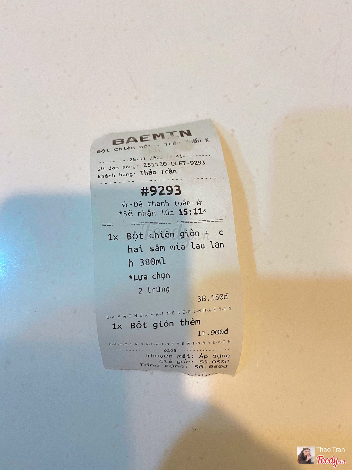 Ghi chú đặt bàn