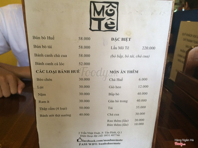 7.6Bún Bò Mô Tê - Trần Nhật DuậtThấy trên Foody mọi người review món lẩu này khá tốt, lại thấy nó lạ nữa nên là có rủ bạn bè đến ăn thử. Nước lẩu đậm đà, chả rồi thịt bò, nạm bò... cũng nhìu, ăn với nước chấm khá là lạ được làm theo công thức riêng của quán, nhưng mình vẫn thích ăn với nước mắm hơn, thấy nước mắm ngon hơn. 180k/lẩu, khoảng 3 người thì no, bữa mình đi nhóm 4 người nên ko no lắm. Quán có nước sâm nhà nấu ngon. Không gian quán nhìn đẹp, nhân viên nhiệt tình, giữ xe free ...Xem thêm