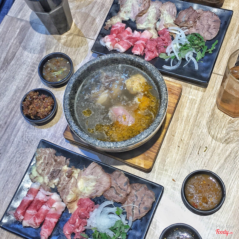 9.4Vua Mặt Trời - Bún BòNhóm mình tới quán vào tối T7 lúc khá đông nhưng nhân viên từ chú gửi xe đến phục vụ đều rất nhiệt tình, bạn mình kêu món nhân viên có báo lại là chờ tầm 30 phút để tụi mình quyết định. Các bạn phục vụ cứ đi ngang là xin lỗi vì để tụi mình chờ, do là phải làm nóng thố đá nên hơi lâu. Lúc lên món thì thấy chờ lâu cũng xứng đáng, nước dùng vị ngọt thanh, sẽ hơi nhạt đối với một số bạn nhưng quán có quầy nước chấm và gia vị để các bạn điều chỉnh lại cho vừa khẩu vị. Thịt bò ngọt và không có bị nghe mùi. Phần bò thố đá sẽ được một đĩa bò hình chữ nhật như hình, bên trong tô còn có giò và chả viên nên không ít như mình tưởng tượng, một người một thố là no, nếu bạn nhóm thì mình khuyến khích kêu ít thố hơn số lượng người và kêu thêm bún và thịt thêm là ok. Tụi mình 4 người kêu 3 thố đá được miễn phí 3 ly trà đào nhưng do bạn mình gọi món nên mình không rõ khúc này là combo của quán hay là khuyến mãi nên mọi người có thể hỏi lại trước nhé. Về giá thố đá so với mặt bằng chung thì có nhỉnh hơn một tý nhưng nhóm mình ai cũng nói xứng đáng. Không gian quán thích hợp cho cả cặp đôi và gia đình dắt nhau đi ăn. ...Xem thêm