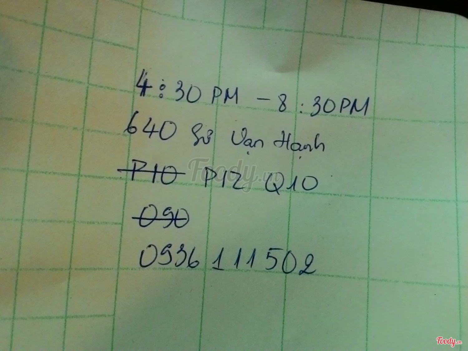 Ghi chú đặt bàn