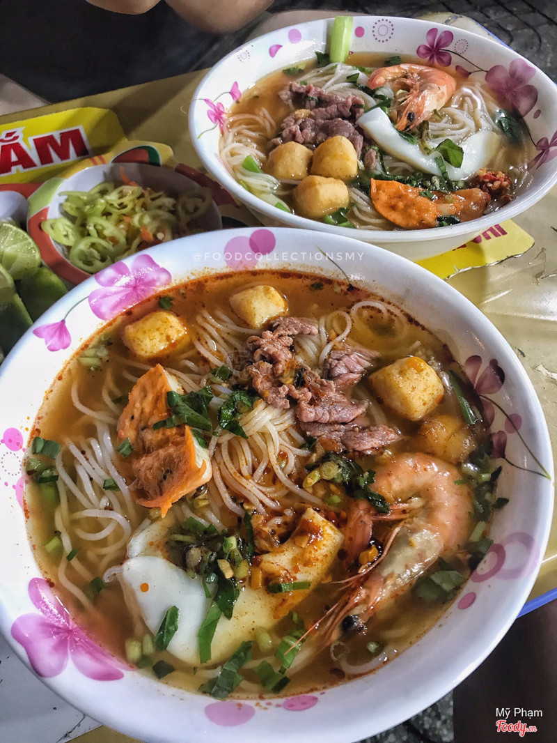 7.0Bán tới sángChen giữa những sạp chợ đêm sầm uất trên vỉa hè đường*** thì Oooo THẮM là chốn sáng giá nhất làng trong mắt một con mập đói ăn. Oooo bán BÚN BÒ, BÚN RIÊU, BÚN MẮM và BÚN THÁI CHUA CAY BỪNG TỈNH CÁ TÍNH. Oooo có hũ sa tế tóp mỡ thần thánh, muốn xu 🙂. Oooo mần bún thái nước sắc, thơm, phong vị Thái rõ rệt chứ ko phải vị canh chua nửa mùa như mị từng nấu fail. Topping đầy đặn lắm nớ, cá viên, chả cua, bò tái siêu mềm, mực tôm tươi rói hợp lí với 40k. Bán xuyên màn đêm. Quán có chỗ đậu xe, ngồi vỉa hè bàn nhựa, view dưới chân tạm sạch sẽ, ngồi ăn cũng mát mẻ và cũng có nhiều bạn muỗi dễ thương chỉ chích con mũn Mít mà không chích mình. ...Xem thêm