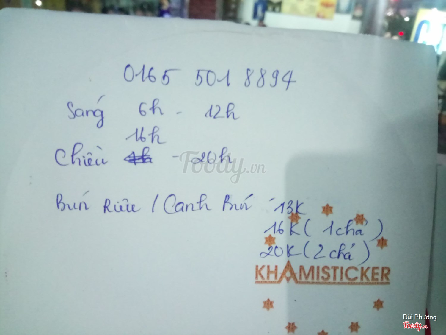 Đang mở cửa  06:00 - 12:00 | 16:00 - 20:00