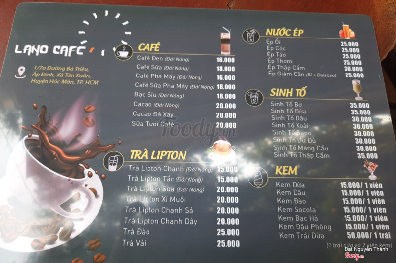 8.2Cà Phê & Kem LanoQuán cà phê kem lâu đời ở khu trung tâm huyện Hóc Môn. Không gian quán thoáng mát, chủ quán có tâm. Có cả menu ăn vặt. Các bậc trung niên hay đến quán sáng sớm ngồi. ...Xem thêm