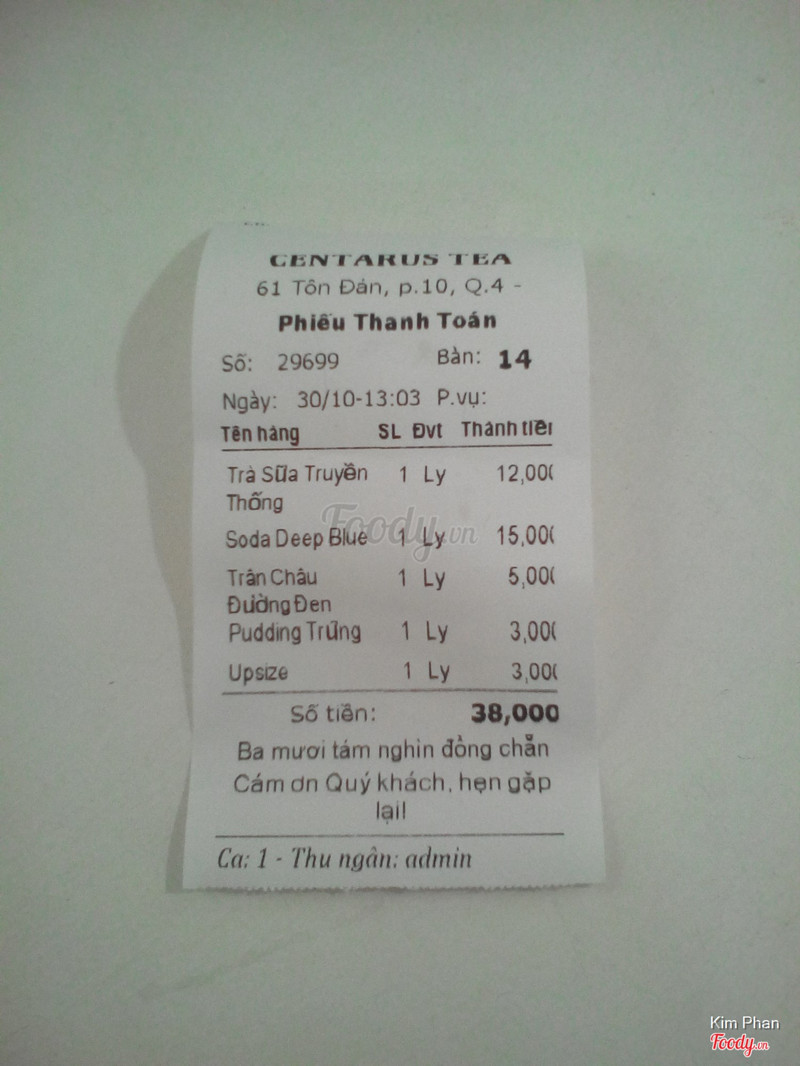 7.4Centaurus Tea - Tôn Đản•Trà sữa (15k/size L): vừa miệng, khá ngon nhưng ly nhiều đá, còn trân châu đường đen hơi bị mềm nên ăn hơi chán, pudding khá rẻ (3k) cũng tạm được, thấy giống rau câu hơn. •Soda deep blue (15k/size M): món này thích hợp để giải khát nè, một ly cũng nhiều, nói chung là ổn. *Quán dễ tìm có điều hơi nhỏ, bên trong khá sơ sài. ...Xem thêm