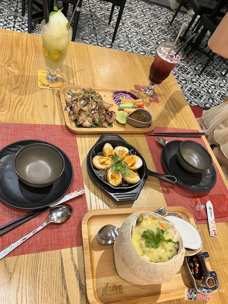 6.4Chang - Modern Thai Cuisine -***Quán rộng rãi, thoáng và sạch, nhân viên thân thiện, đặc biệt lên đồ rất nhanh. Về món ăn: Mình đi 2 người gọi 1 trứng lòng đào sốt me cay, 1 gỏi má heo và 1 cơm dừa hải sản, nước có tắc tuyết và trà trái cây 4 mùa. Các món ăn đều k hợp khẩu vị mình lắm, kiểu nêm nếm k tới vậy, nhạt nhẽo k có điểm nhấn, món nước cũng vậy. Điểm cộng là cơm dừa hải sản rất nhiều nhân hải sản. Có thể mình sẽ quay lại nhưng để thử những món khác thôi. ...View more