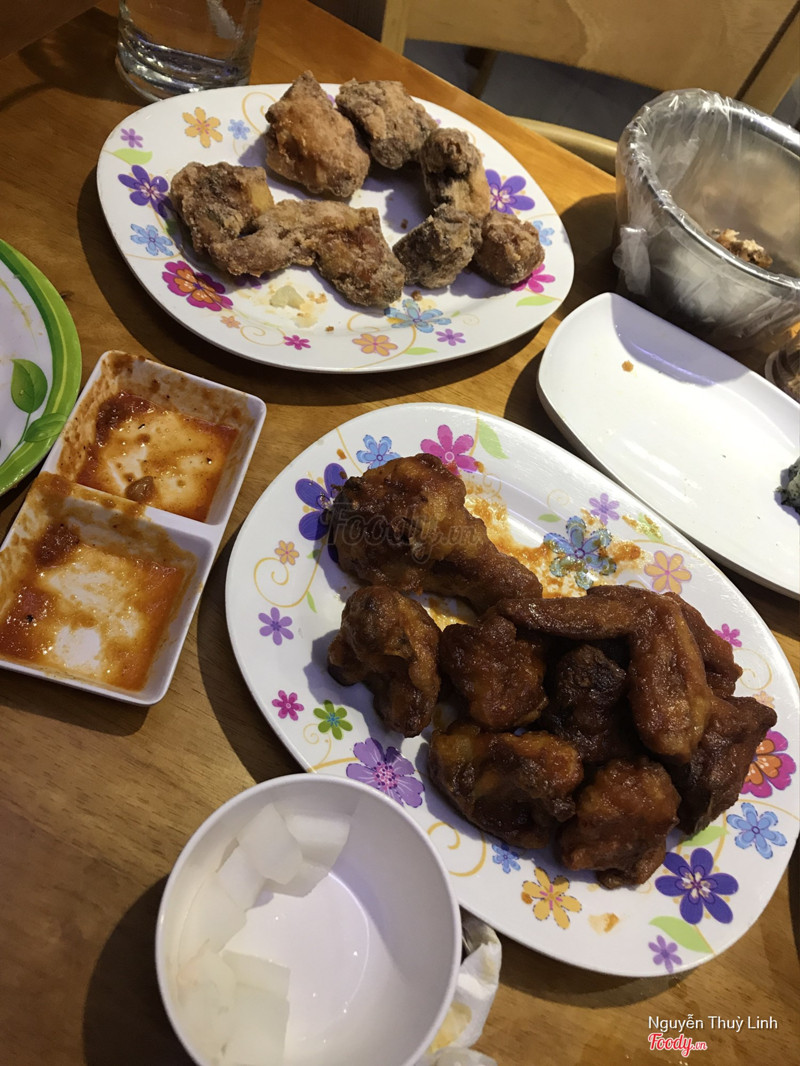 7.6Gà phô mai ngon, tuy nhiên phục vụ chưa chuyên nghiệpQuán này thì ở khu dành cho người Hàn, toàn là chữ Hàn Quốc quanh đây thôi. Không gian quán cũng thoáng mát, rộng, nhà vệ sinh sạch. Trang trí cũng bình thường, bàn ghế cao. Về món ăn thì mình gọi 1 phần gà rán xốt Hàn Quốc với 1 phần gà phô mai half, cơm nắm 4 viên là được tặng khi order gà nhé. Theo cảm nhận của mình, gà sốt HQ thì thơm, gia vị mặn mặn ngọt ngọt, gà thì mềm. Còn gà phô mai thì không quá cay, gà ăn mềm mà không bị khô nha, phô mai tan chảy vì chảo nóng nên phô mai không bị khô lại quá nhanh. Mình ưng gà phô mai ở đây nè. Salad bắp cải là được tặng kèm cũng ok luôn nhé. Đi ăn 2 người kêu nhiêu đây còn được tặng 4 viên cơm nắm là no cực no luôn nha. Giá ở đây mình thấy cũng không quá đắt so với mặt bằng chung, đồ ăn cũng nhiều chứ không ít, ở khu này giá 140k/ phần là ổn rồi. Tuy nhiên nhân viên mình thấy cứ ú a ú ớ như thế nào ý, 2 lần gặp rồi mà bạn nữ ấy vẫn vậy :)) Nói thì nhỏ, kêu món mấy lần bạn ấy mới hiểu :)) Mình góp ý vậy thôi mong nhân viên khắc phục nhé. ...Xem thêm