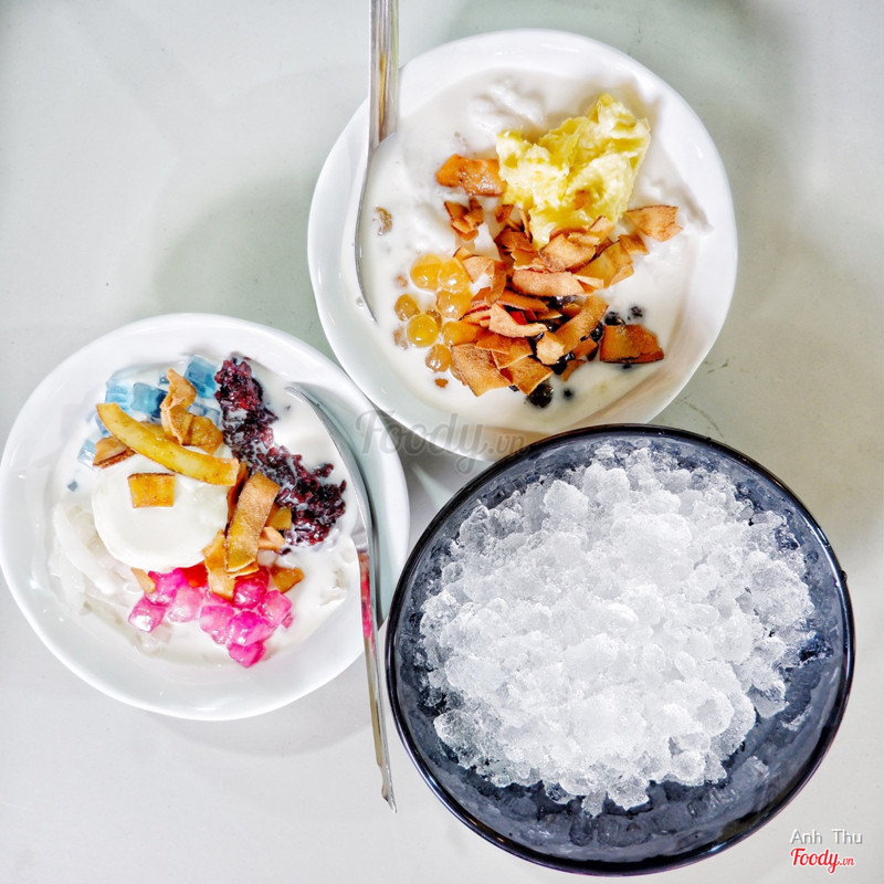 8.4Chè Dừa Thái Lan - Phùng Văn Cung2 món đặc biệt ở đây mình ăn thấy ngon là dừa dầm sầu riêng với sữa chua nếp cẩm.\ Dừa dầm sầu riêng có cơm sầu riêng, trước đây có hẳn nguyên múi sầu riêng luôn nhưng do sợ mọi người ăn vất vả lột hạt nên giờ chỉ bán phần có cơm sầu riêng. Chè độ ngọt vừa đủ, ngoài sầu riêng có trân châu đen và trân châu hoàng kim ( có hôm hết trân châu hoàng kim sẽ thay bằng trân châu trắng), cơm dừa cắt thành sợi, dừa khô. giá 32k Còn sữa chua nếp cẩm bên đây có cục sữa chua với nếp cẩm, thêm 2 loại thạch hạt lựu với hoa đậu biếc (topping thạch có thể thay đổi theo ngày), dừa khô. giá 25k Điểm chung: Cả 2 món thêm đá vào là ăn ngon haha. ...Xem thêm