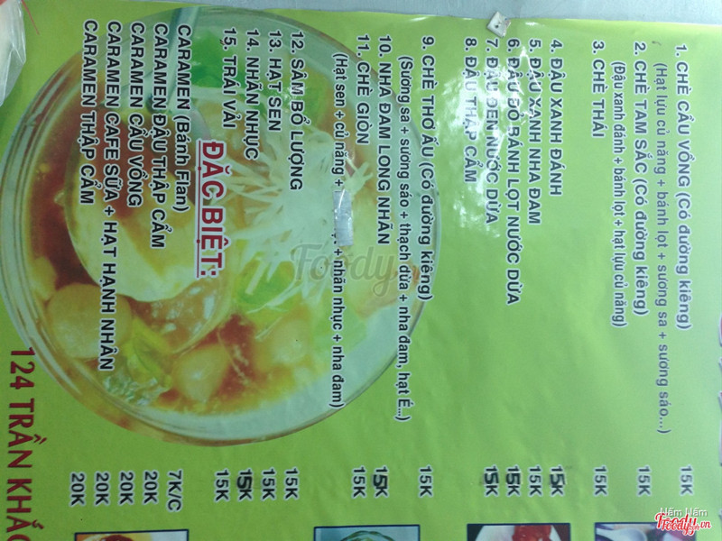 5.6có nhiều món lắmkhông gian nhỏ ngay cầu nguyễn khắc chân , ngồi nhìn thấy kênh nhêu lộc, không gian bình thường khá nhỏ, có nhiều loại chè lạ , chè thơ ấu . . . có bánh nậm , bánh lọc. . . .ấn tượng nhất là cái bảng của quán 1 bên là chè không ngọt bên kia là chè không ngọt không phải là chè ^^ ở đây củng rẻ lắm 2 người ăn 2 chè 2 bánh có 70-80k ak ...Xem thêm