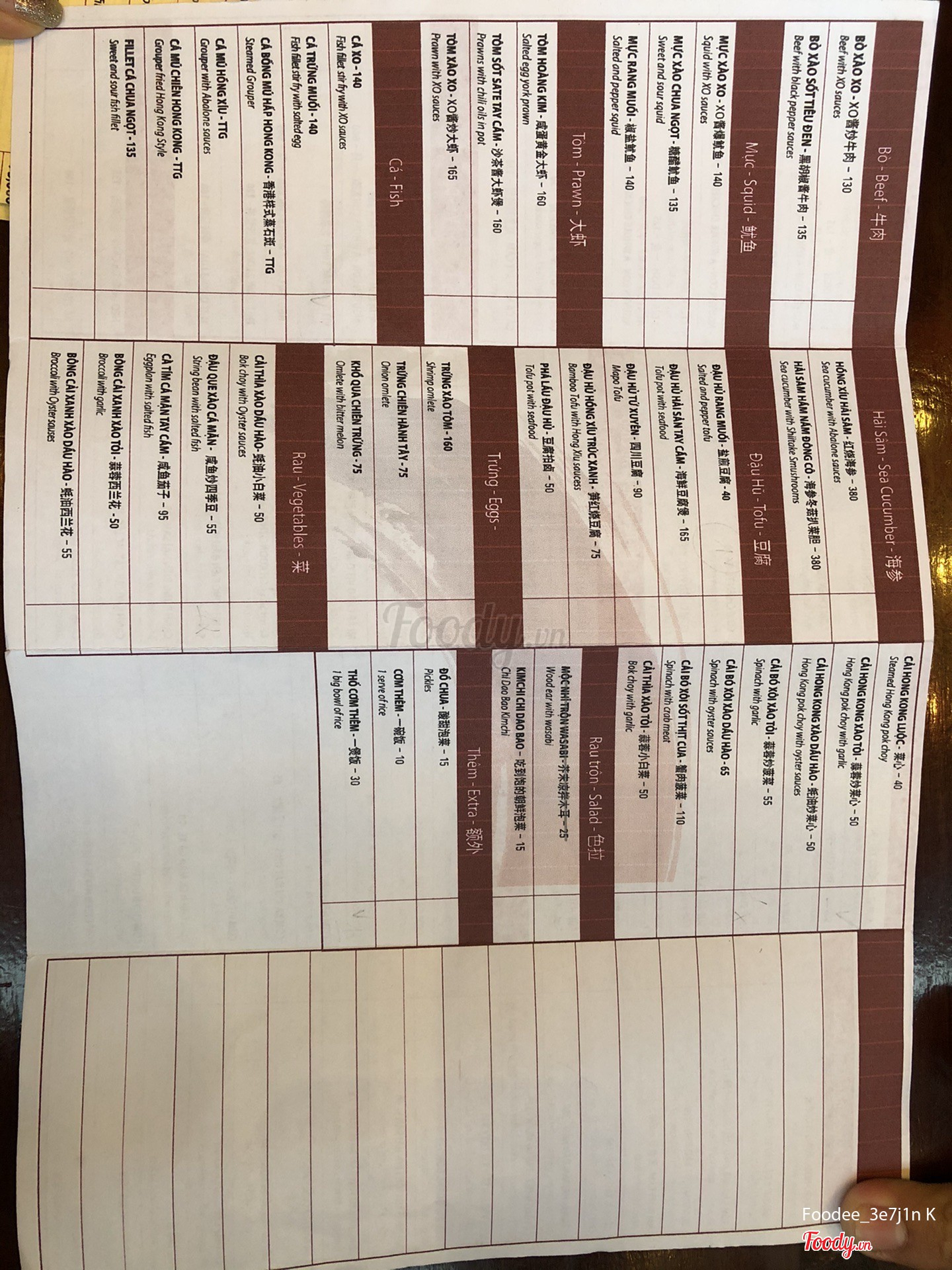 Ghi chú đặt bàn