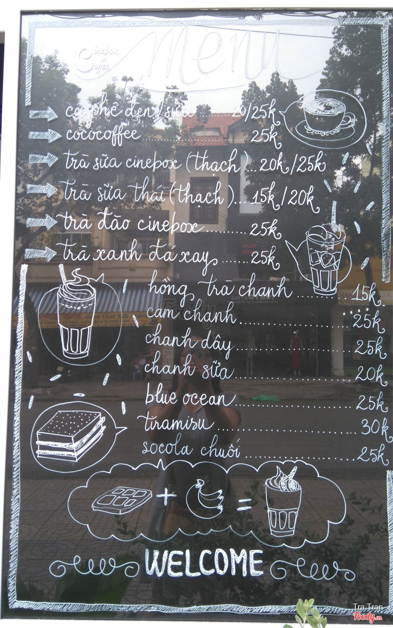 6.8Cinebox Coffee28.09.2016 Cinebox Coffee 212 Lý Chính Thắng, phường 9, quận 3, HCM Pass wifi: 12345678 Càng ngày càng chán vào đây vì chẳng có gì ngoài đồ uống, dù trong menu còn có bánh ngọt đó. Đi làm về chạy qua đây xem phim, quanh Cinebox trong phạm vi đi bộ 1 phút chẳng có gì ăn. Đá xay chocolate bạc hà matcha: 30k ...Xem thêm