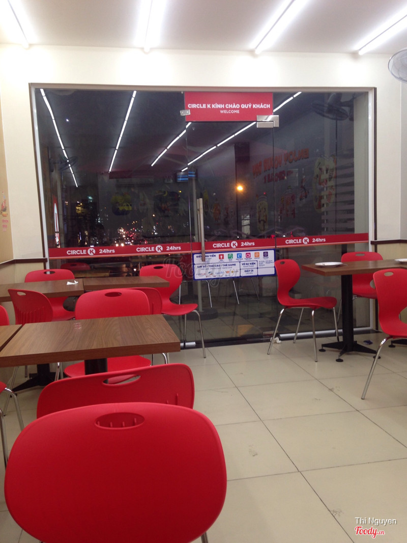 7.8Circle K - Cao ThắngCircle K này vừa gần công ty mình lẫn rạp chiếu phim Mega s. Tranh thủ làm ra vô đây mua gì ăn lót bụng rồi đi xem fim. Ở đây có mì gói trộn bình dân ăn cũng ok lắm. Trước mình cũng hay vô mấy chi nhánh Circle ăn món này. Mì trụng sơ với rau giá rồi thêm xúc xích chiên 13k. Còn nếu có thêm trứng ốp la 18k. Ăn xong uống thêm ly pepsi 7k là no nê. Ly lớn này refill. Còn ly nhỏ 6k. Tiện dụng cái gì cũng có, mở cửa 24h. Trên lầu có khá nhiều bàn ghế trống ngồi thoải mái, sạch sẽ. Nhân viên nhanh nhẹn, lịch sự. ...Xem thêm