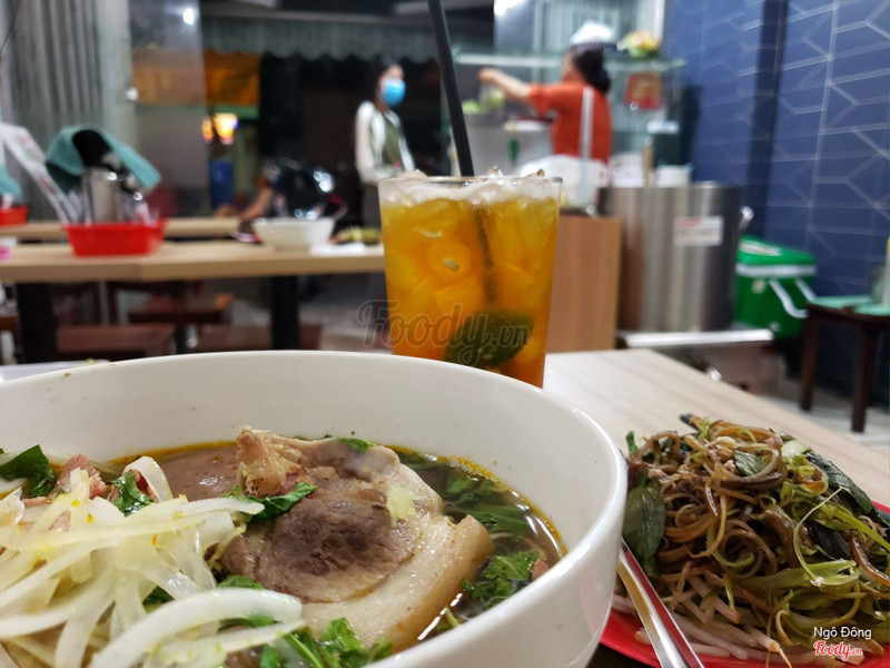 8.0Cô Ba - Bún Bò HuếNằm trong hẻm, tiệm khá nhỏ nhưng thoáng mát, sạch sẽ, chỗ để xe hơi ít thôi Mình được chị chủ quán giới thiệu cho combo của quán gồm 1 tô đặc biệt, 1 ly hồng trà tắc và 1 cái bánh flan chỉ có 50k. Tô đặc biệt của quán siêu nhiều luôn, nhìn là ngập tràn topping che bún luôn. Topping gồm thịt bắp, cây chả, chả cua, giò, bò viên, gân nước lèo đậm đà ngon lắm, một tô ăn siêu no luôn. Kèm theo combo là ly hồng trà tắc ngon lắm nha chua chua thơm thơm, mình không thích ngọt quá nên trà chỗ này làm hài lòng mình. Mình gọi thêm tô gân sụn, đem ra hết hồn, siêu bự phải nói là chà bá luôn, ngồi gặm ăn đã lắm. ...Xem thêm