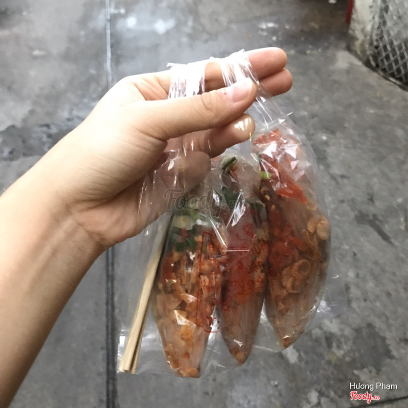 8.4Cô Loan - Bánh Tráng TômTính tối mới review mà mọi người hỏi nhiều quá mình lười rep hết nên đăng luôn vậy... Chỗ này nằm trong hẻm trường tiểu học nên chủ yếu bán cho mấy bé học sinh, bịch bé xíu nhưng rẻ nè. Topping bánh tráng có tôm khô rim, mỡ hành, đậu phộng, hành phi và ớt sa tế nếu bạn ăn cay. Bánh tráng được cắt sẵn thành miếng vuông vừa miệng, có điều bịch nhỏ quá nên trộn khó. Ngon nhất là dùng tay vò kỹ để bánh tráng thấm đều dầu hoặc đổ chung ra thau lớn rồi trộn. Thấy nguyên liệu đơn giản vậy mà ngon lắm nha, nhất là mấy em tôm nhỏ được rim vừa miệng lắm chứ không bị mặn như tép khô. Nghe người em đồn là có bịch 5, 7, 10k nhưng chỉ khác lượng bánh tráng thôi, topping vẫn vậy nên mua mấy bịch 5k ăn cho đã. Mình ăn 3 bịch vẫn không ngán, công nhận mấy món này ăn dễ bị ghiền, có điều sợ nổi mụn thôi. À đi vô hẻm thấy chỗ nào có dán bảng Foody thì mới đúng nhen tại 2 chỗ bán kế nhau luôn á, coi chừng lộn. ...Xem thêm
