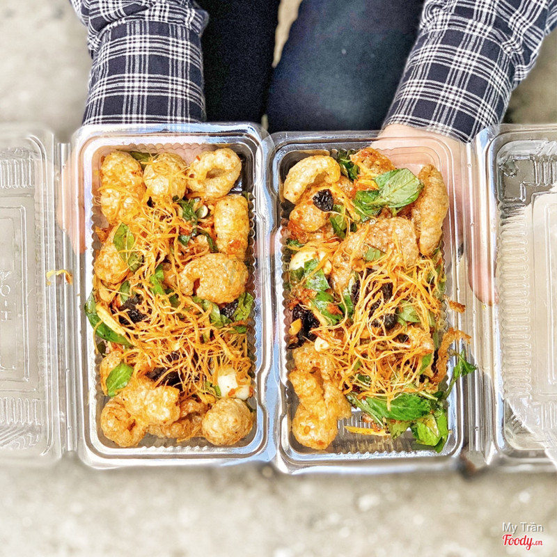 8.2Da heo trộnNgoài bánh tráng trộn, bánh tráng cuốn thì cô Yến có bán thêm da heo chiên giòn trộn nữa nè. Giá chỉ 24k/hộp quá trời da heo, căn giòn rộp rộp luôn. Có thêm mấy topping bánh tráng trộn zô nữa nên ăn phê luôn. ...View more