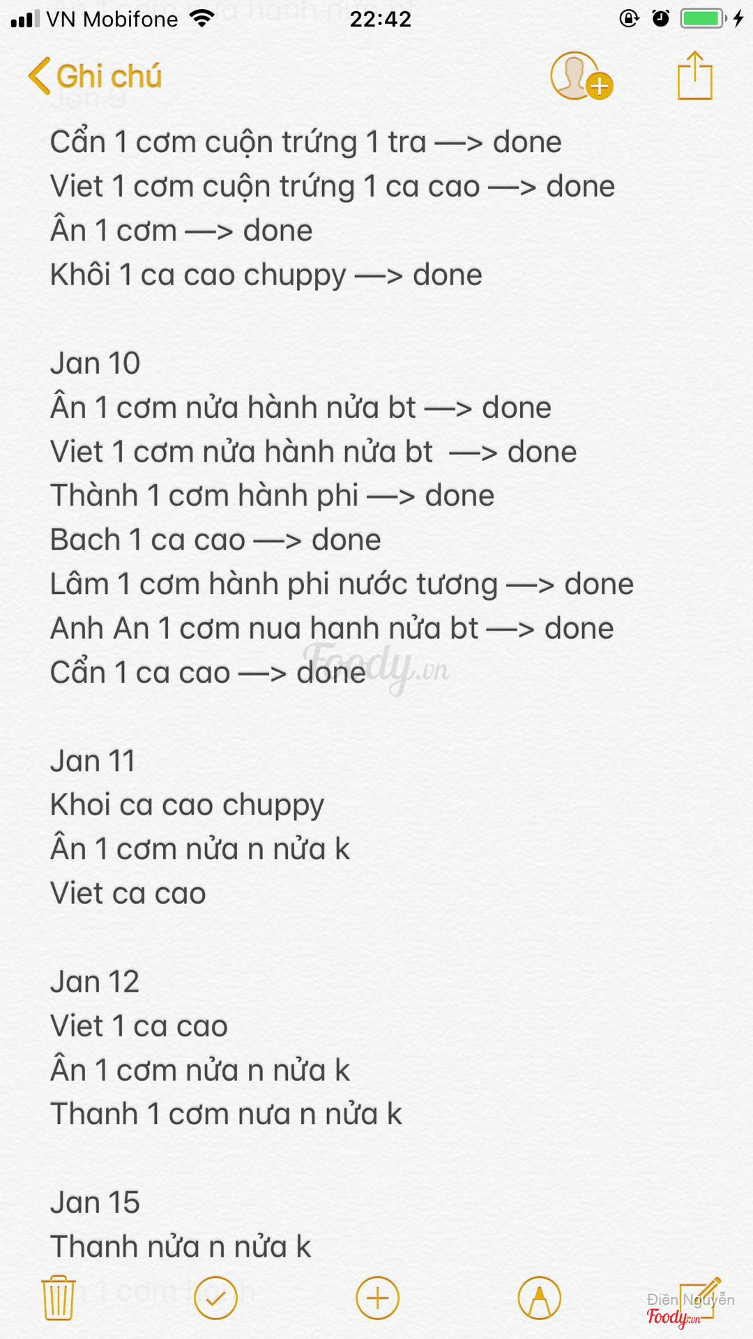 Ghi chú đặt bàn