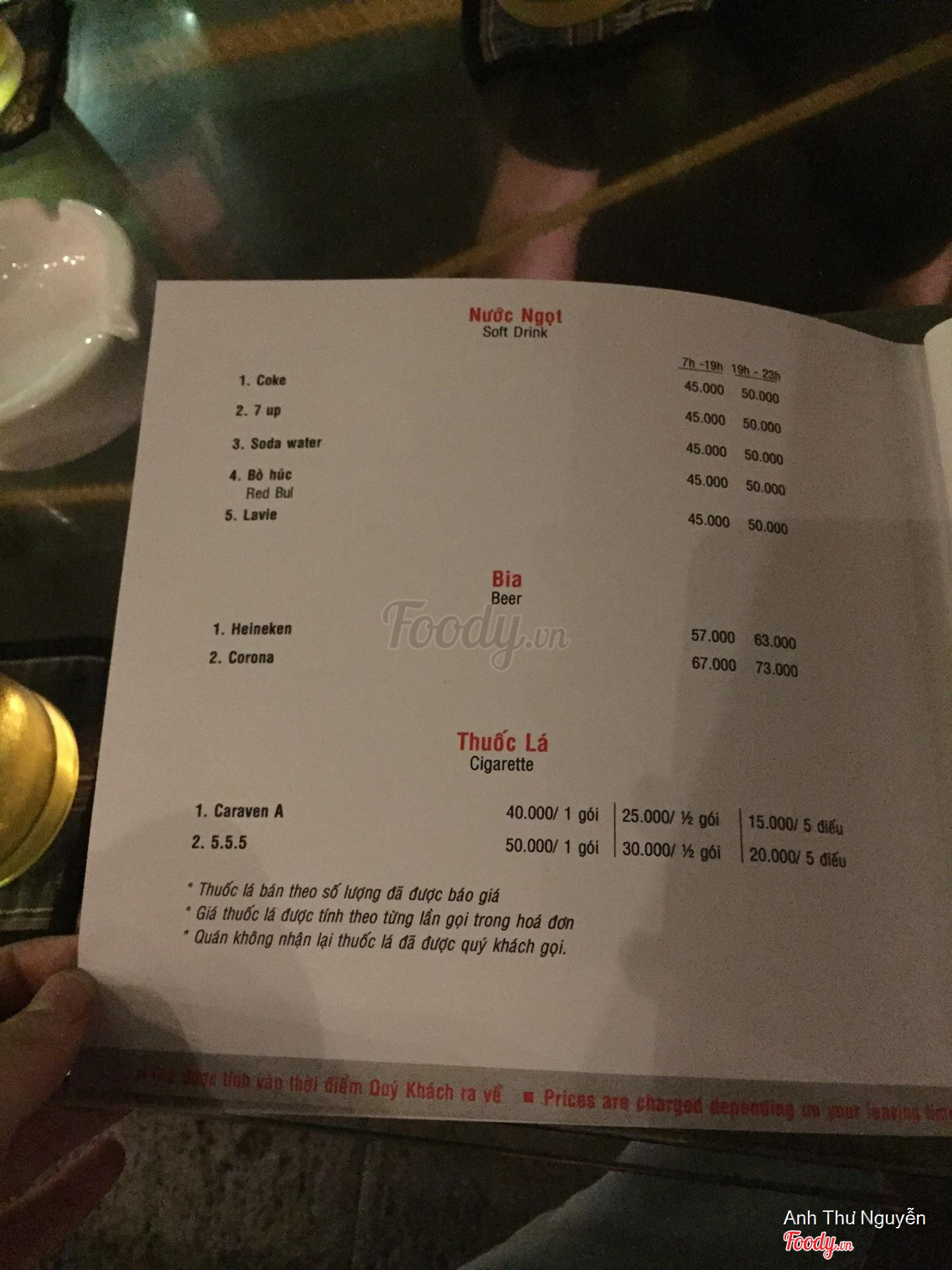 Ghi chú đặt bàn
