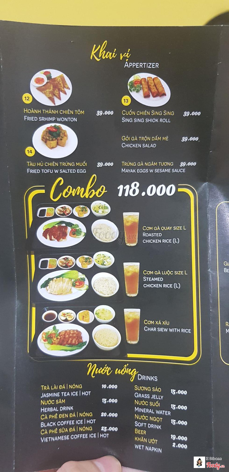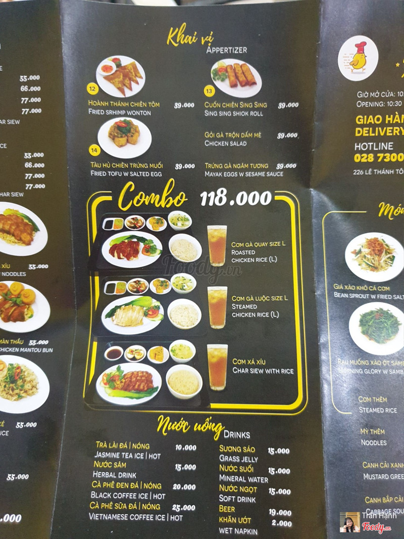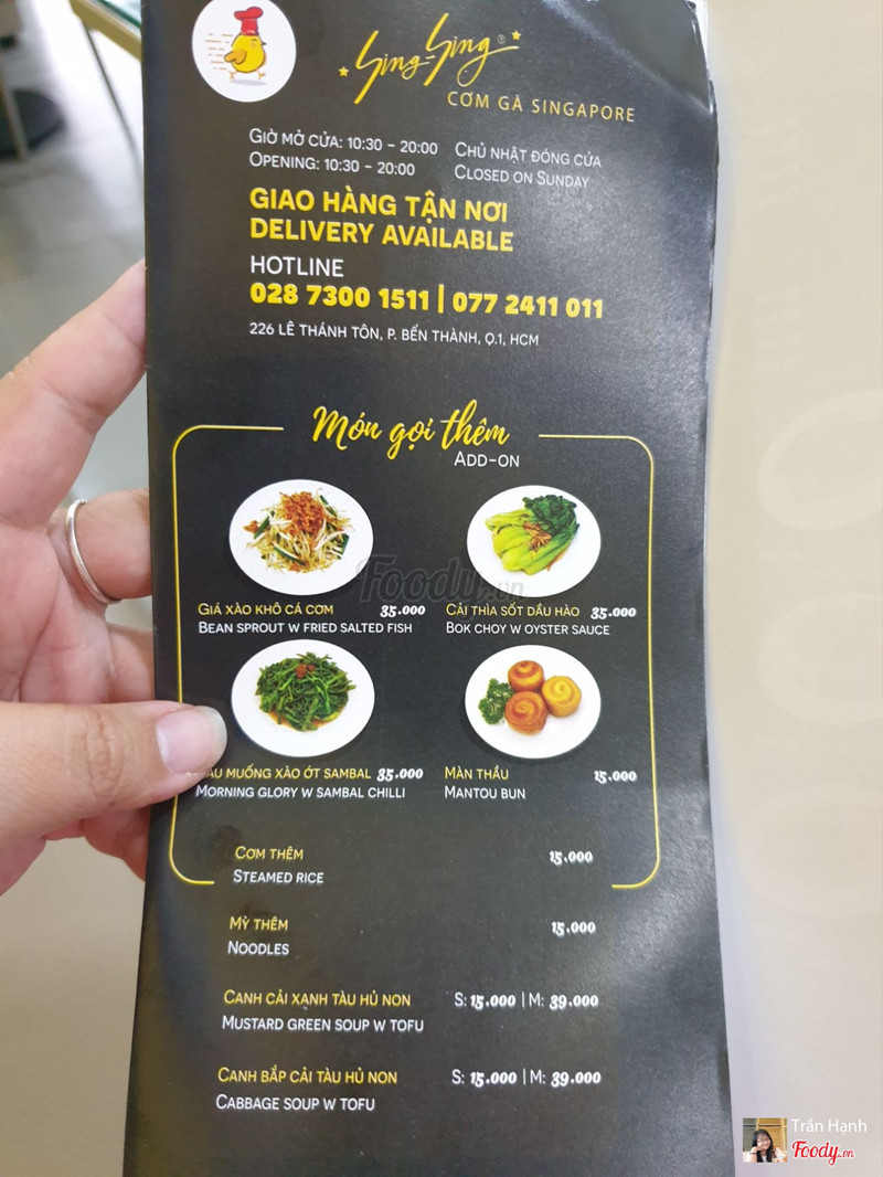 8.0Cơm Gà Sing Sing -***Quán cơm gà ở khu vực sau lưng chợ bến- thành- không gian quán nhỏ nhỏ xinh xinh, tông màu vàng đen khá bắt mắt, đèn đuốc sáng sủa, sạch sẽ. quán có 1 trệt và 1 lầu, tầng trệt cũng tương đối rộng rãi rùi. Quán ghi là cơm gà nhưng cũng đa dạng các món cơm như xá xíu, gà luộc, gà quay, mì khô, cháo gà xé, có các combo cơm để ăn mà thấy 1 combo cơm gồm mấy món nhỏ nhỏ có thể gọi thêm cơm ăn thêm được. như phần cơm gà quay có phần cơm gà quay, đậu hũ trứng muối, trứng ngâm nước tương, canh bắp cải và ly nước luôn. Đi team đông gọi được nhiều món ăn chung kiểu gia đình như rau muống xào ớt samba, giá xào khô cá cơm, gà quay màn thầu, cơm gà luộc, cơm xá xíu, cuốn chiên sing sing. rau muồng xào ớt samba kiểu sing hương vị như kiểu rau muống xào mắm í, mặn mặn cay cay, ăn cũng bắt cơm lắm, gà luộc thì chấm với nước tương đen ok lắm, gà quay thì lớp da mỏng giòn. Ăn xong thì quán có tặng cuốn coupon để xài lần sau nè, áp dụng mua mang về và ăn tại quán. Có dịp quay lại ủng hộ quán. ...View more
