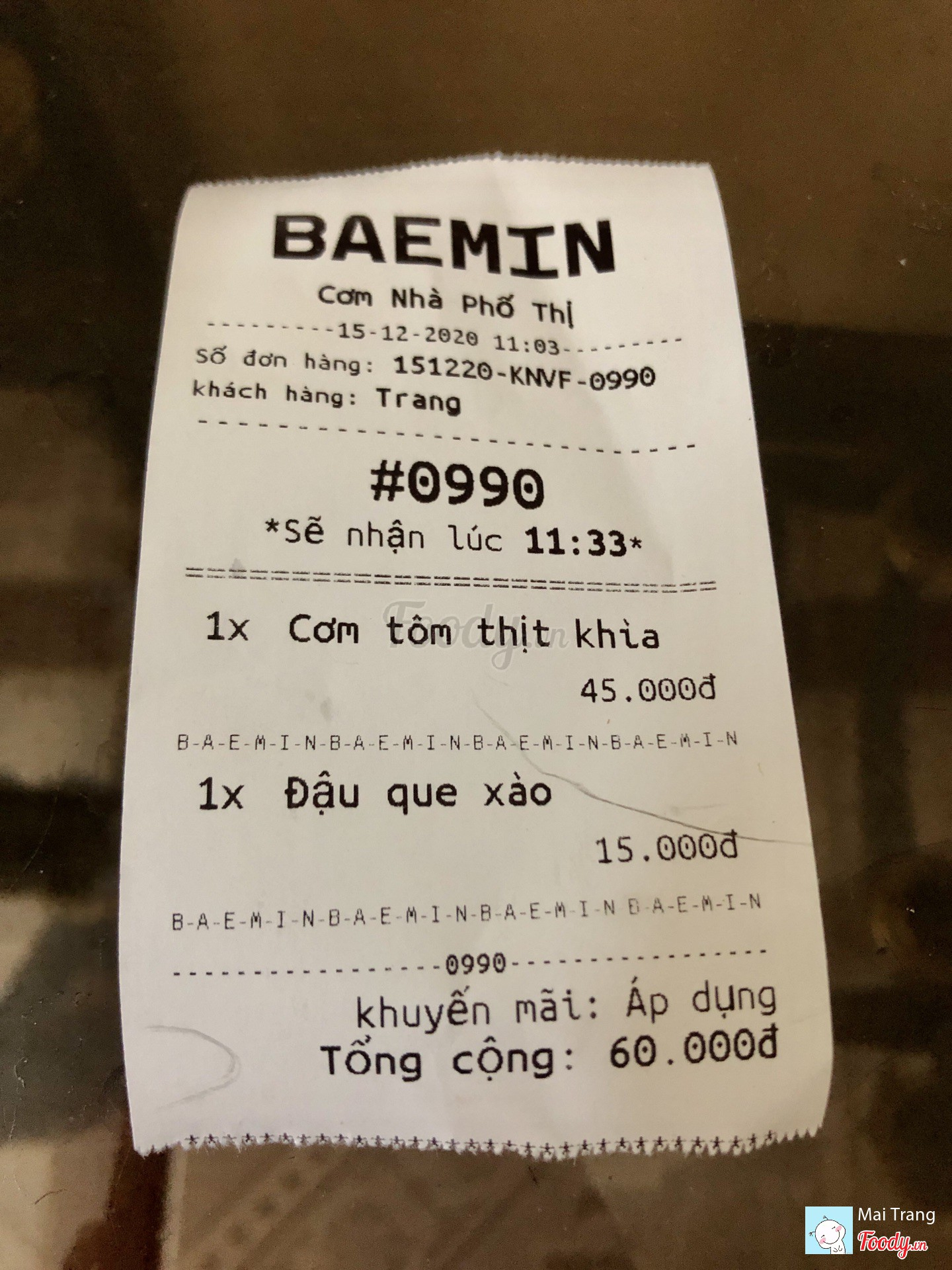 Ghi chú đặt bàn