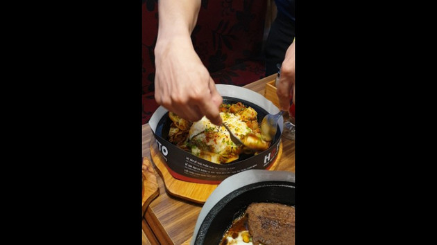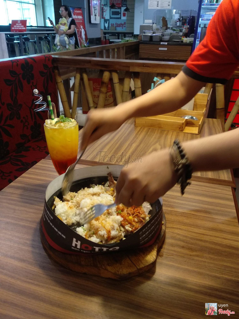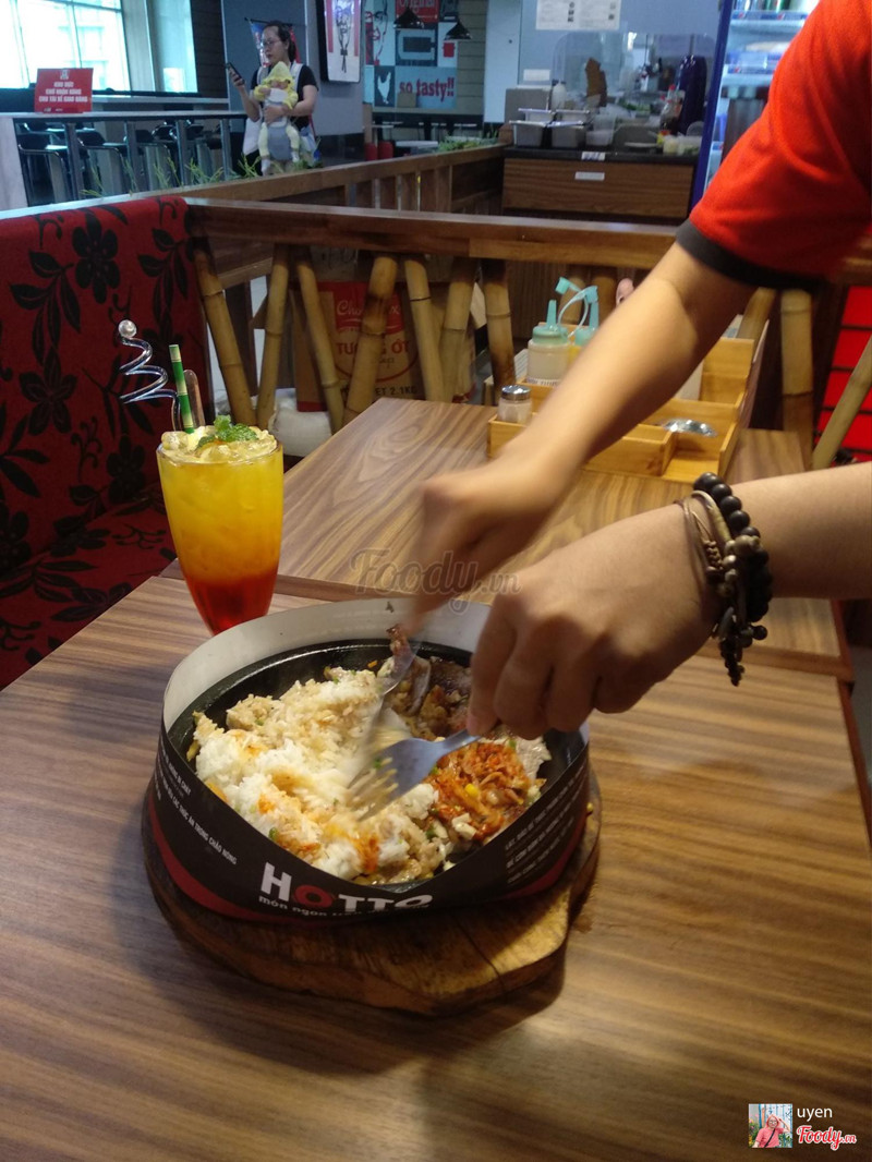 8.2Hotto - Món Ngon Trên Đĩa Nóng - Lotte Mart Nam Sài GònQuán nằm trên tầng cao nhất trong khu ẩm thực. Mình chọn quán này vì rất thích ăn cơm trên đĩa nóng. Đang có chương trình giảm giá Cơm kim chi thịt heo sốt cay còn 59k. Một phần khá là nhiều, vừa cả thịt vừa cả cơm lun ăn rất là no đó. Nhân viên ở đây cũng dễ thương, lúc đem cơm ra cũng đợi để cho mình chụp hình xong rồi mới trộn cơm giùm. Mấy món khác như bò bít tết cũng ngon đó, ở đây có vẻ chuyên về bò, giá hơi cao xíu nhưng xứng đáng để thử nha. ...Xem thêm