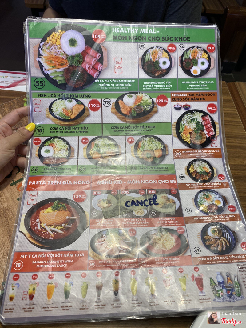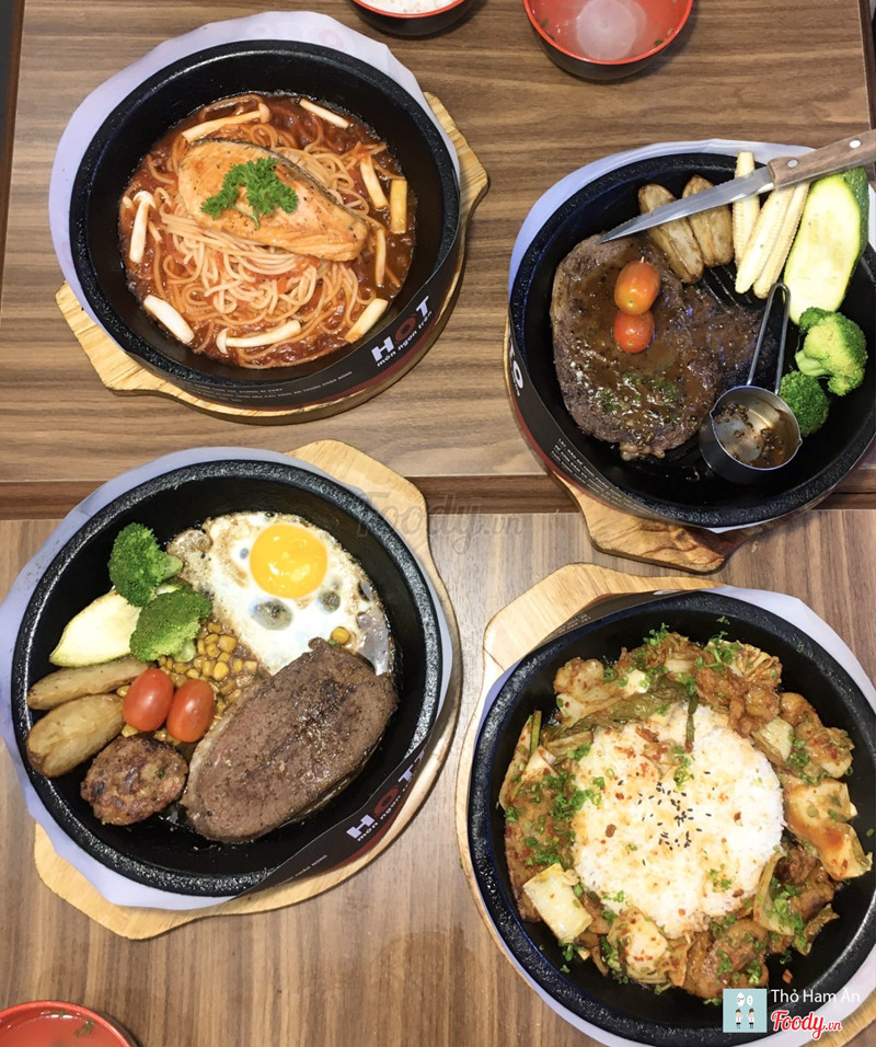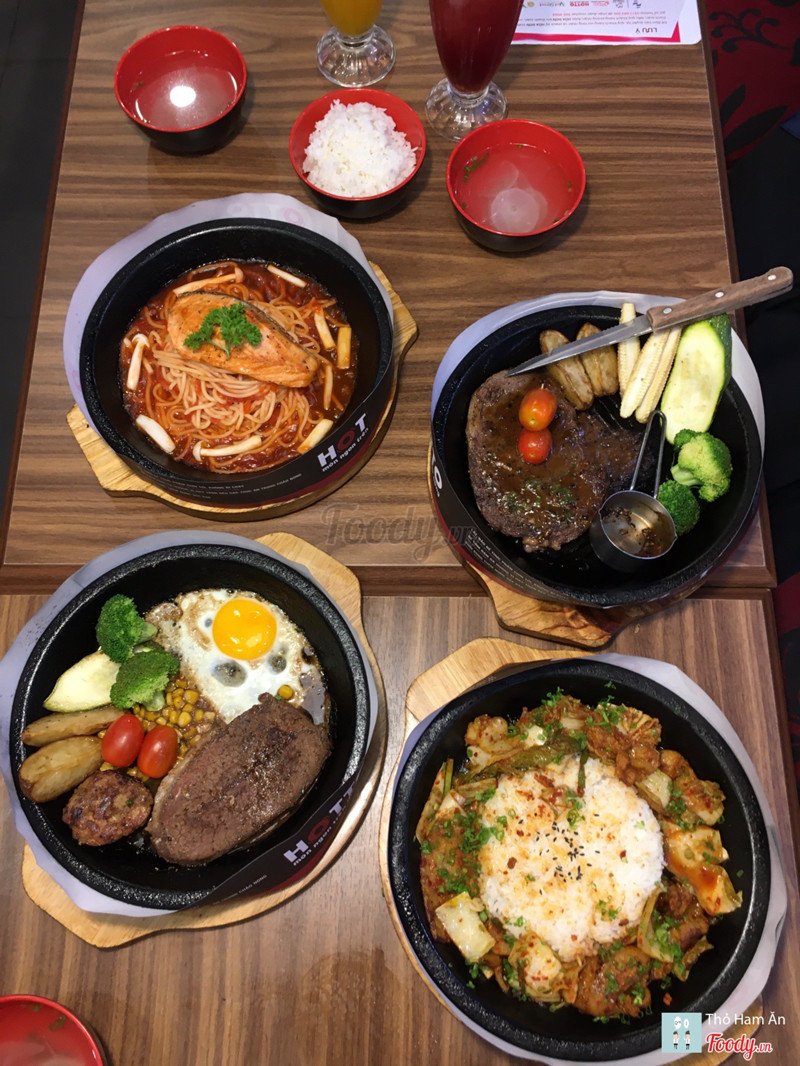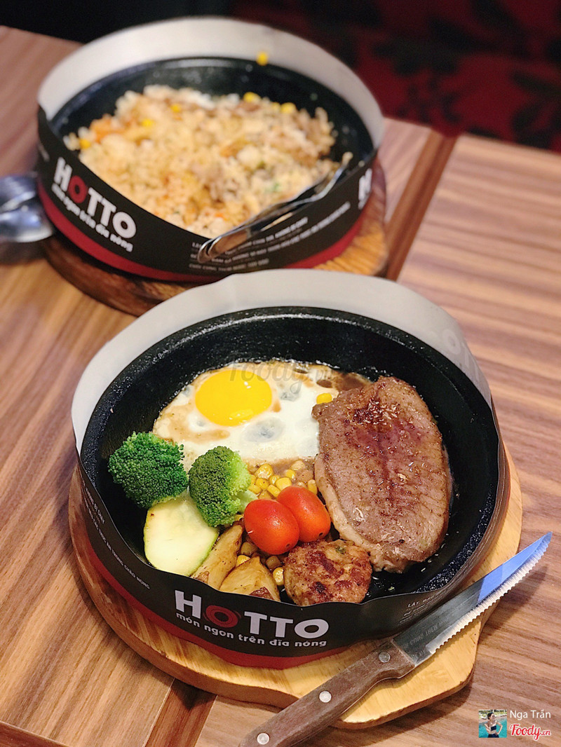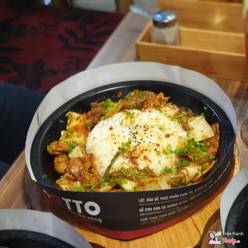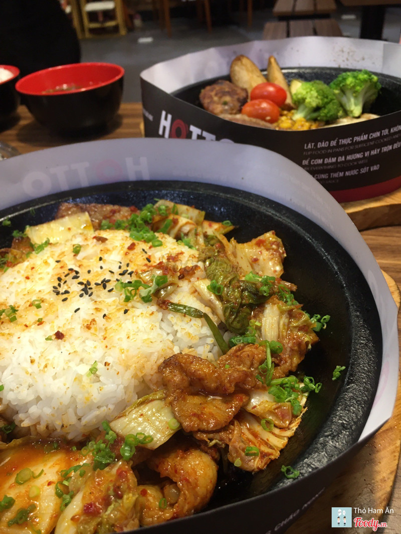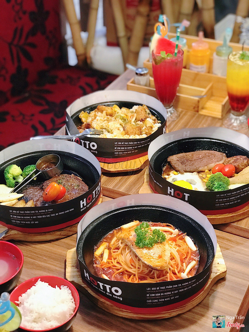 8.8Cơm trên chảo nóng.Dạo này trời mưa mà được ăn món gì nóng xì xèo thì còn gì bằng nên cả nhóm quyết định chọn Hotto. Đồ ăn nhiều, giá hợp lý, không gian ngồi lại cũng ấm cúng. Thấy món Cơm kim chi thịt heo sốt cay đang giảm còn 59k nên kêu liền. Kim chi ngon nà, chua cay vừa đủ, thịt nướng thơm như mấy nhà hàng bbq vậy đó. Khẩu phần khá nhiều chưa kể còn chén canh đi kèm nên ăn no lắm. Ngoài ra nhóm mình còn kêu thêm: 56. Bò Rib Eyes nướng sốt tiêu - 199k quả ko hổ là Best Choice 🤤 Bò mềm ko dai dù mình để chụp hình cũng khá lâu 😝 Sốt nhiều thêm tí nữa là perfect. 23. Lõi vai bò Mỹ với burger kèm khoai tây & trứng - 159k Mấy phần steak này còn kèm theo chén cơm và canh theo ngày nữa đó nha. 18. Mỳ Ý cá hồi với sốt nấm tươi - 139k món này thì sốt nhiều nè. 45. Cơm bò kim chi sốt phô mai - 99k Nước đa phần là soda với trái cây nè: _Mưa nhiệt đới _Nước ép chanh leo _Hibicus xí muội _Nước ép dưa hấu ...Xem thêm