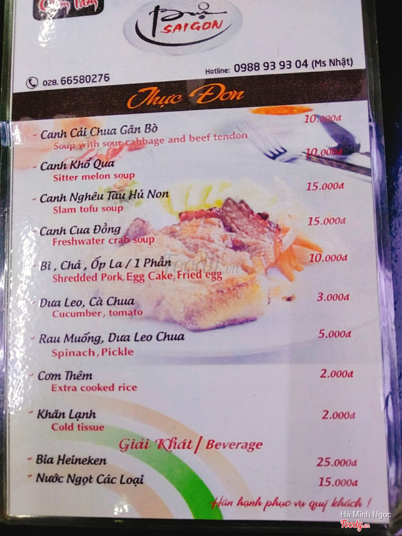 Tôi đã ăn rất nhiều tiệm cơm tấm và cũng nhiều chi nhánh của Bụi Sài Gòn. Tôi đóng góp 1 chút ý kiến cho mọi người tham khảo như sau: 1. Vị trí quán: mặt tiền đường Nguyễn Thượng Hiền (gần ngã tư Võ Văn Tần - NTH), dễ tìm. 2. Bãi xe: để được khoảng 10 xe máy. Có bảo vệ dắt dùm và khá niềm nở. Gửi xe có phiếu đàng hoàng. 3. Món ăn: - Cơm sườn muối ớt. - Cơm sườn nướng mật ong. - Cơm đùi gà nướng. - Cơm sườn nướng thông thường. - Cơm chả cá chiên. - Canh cải chua gân bò. - Canh khổ qua. - Canh nghêu. -> Tôi thích cơm sườn non nướng muối ớt. Miếng sườn rất ngon và có vị đặc trưng riêng. Món này rất được ưa chuộng nên hết rất nhanh. Vì vậy, nhiều lúc tới quán tôi phải ăn món khác (hic hic). -> Canh cải chua ngon. Canh nghêu nguội (do nấu nghêu sẵn để riêng) không ngon. Canh khổ qua tạm tạm vì khổ qua cứng và thịt bỡ. -> Đồ chua: rau muống, cà rốt với củ cải trắng. Cả 2 món này đều luôn trong tình trạng chua chưa tới. Nên ăn không ngon và có hại cho sức khoẻ. Có thể thay thế bằng dưa leo. 4. Nhân viên: toàn nam thanh niên trẻ và vui vẻ. Nhớ mặt khách và niềm nở. 5. Vệ sinh: trung bình khá. Ưu điểm là không xả rác dưới nền gạch nên trông ổn hơn các quán khác rất nhiều. 😡 Điểm trừ các món đồ chua, dưa leo không đậy lại nên có ruồi bu. Hôm nào, tôi thấy tôi không ăn đồ chua/dưa leo. 6. Nước uống: trà đá miễn phí. Có các nước khác như coca, nước suối tính tiền 😄 7. Giao hàng: có giao tận nơi. Nên trừ hao thời gian. Tôi gọi trước 3 tiếng nhưng giao trễ gần 1 tiếng. Chưa kể đã nhắc liên tục và hứa đúng giờ. ...Xem thêm