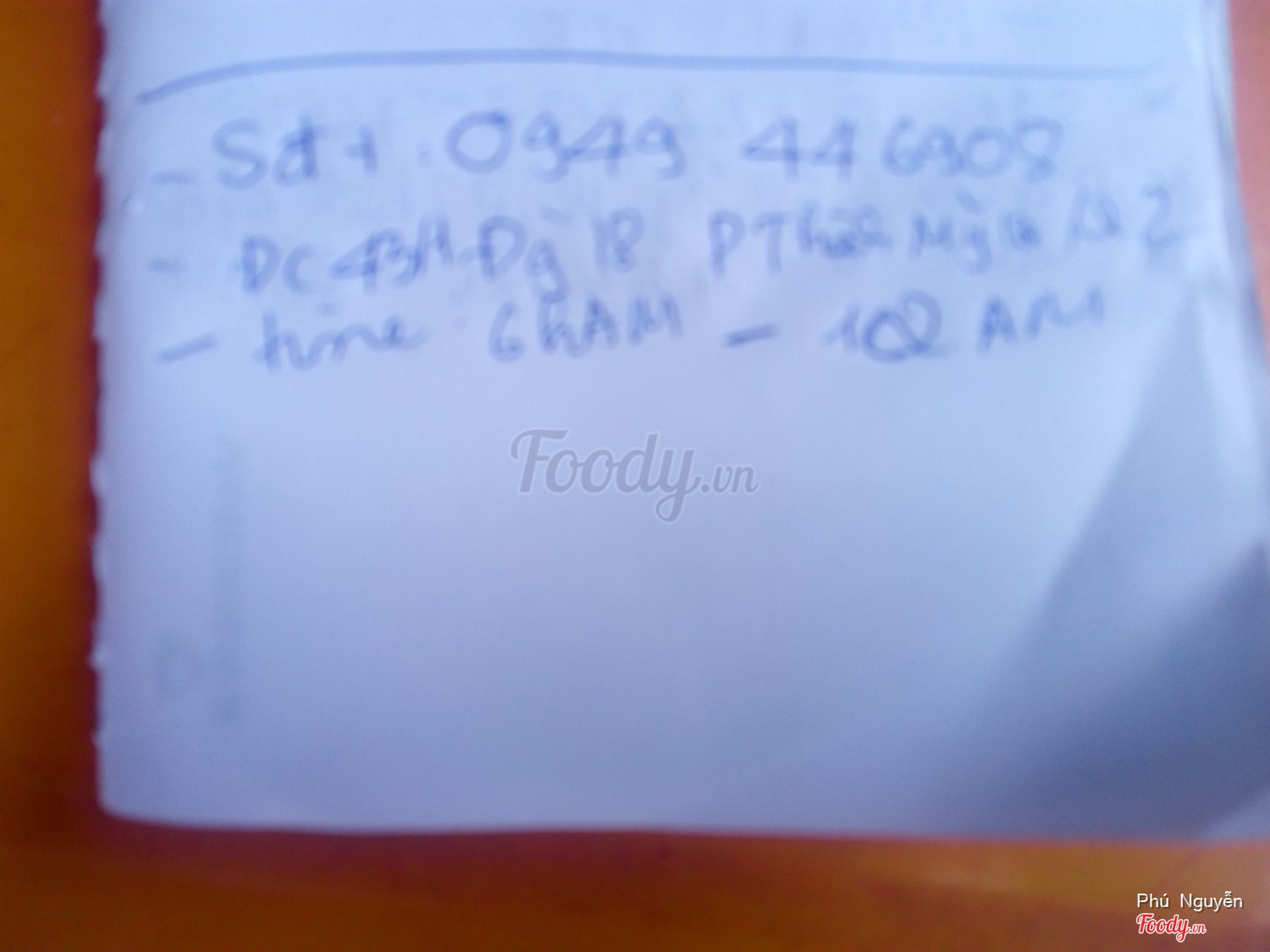 Ghi chú đặt bàn