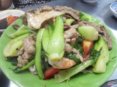 Chuẩn bị cho món cật heo, dồi trường xào cải rổ(món này khách yêu cầu thêm)
