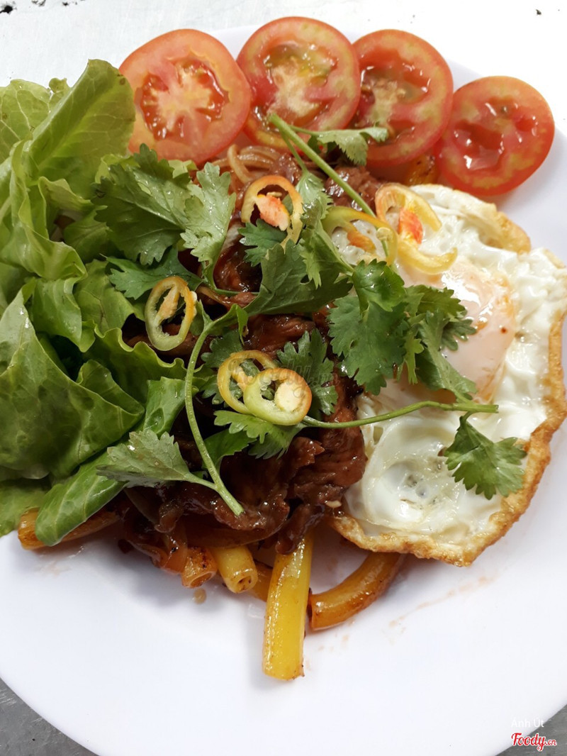 8.0Nước sốt ướp thịt rất ngonCô xào ăn ngon miệng lắm. Hay ra chợ mua đồ là gọi món cô ăn từ nui xào bò, mì xào bò đến bò né,...ăn món nào cũng thấy hợp khẩu vị. Nhất là nước sốt bò của cô ăn là hết sảy. Hôm nay ăn cơm gà chiên, cô xào cơm nêm sao ăn ngon miệng lắm. Gà chiên cũng giòn nữa :)))). Cô chủ quán nhiệt tình nên xào món nào là ăn ngon lành món đó :))). Giọng cô hơi lớn nên đôi lúc hơi giật mình :))). Quán không có chỗ ngồi, chủ yếu bán rồi bưng lên chợ, trừ khi ghé mấy quán nước gần đó rồi kêu thì cô mang đến ăn. Được thì mua đem về là okay nhất. Ps: được cô khoe, T6 hàng tuần sẽ nghỉ bán để đi nấu bún bò bán sỉ cho 2-3 công ty đặt hàng của cô )))). ...Xem thêm