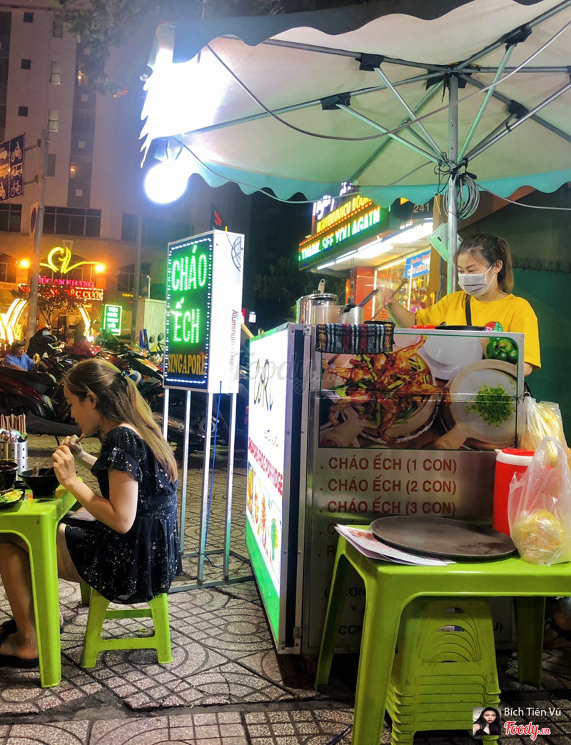 8.4CHÁO ẾCH NGUYÊN BẢN SINGAPORECháo ngon, ếch ngon, rau ngon. Con ếch đô vật nhất mình từng ăn luôn nha ))). Sốt chuẩn Singapore, bạn chủ chia sẻ là làm từ mười mấy loại gia vị truyền thống, đặc biệt món ăn là nguyên bản từ Singapore luôn nhé. Địa điểm rất dễ tìm, nằm ngay bùng binh góc đường*** trước nhà sách*** Mình ăn combo 100k: 1 thố 3 con ếch + 2 tô cháo + rau ăn kèm. Ếch rất to, chắc thịt và rất thơm. Sốt xuất sắc, siêu siêu ngon. Cháo thơm, sánh mịn. Rau xanh tươi giòn. Các bạn ghé thử ủng hộ quán nha 👍🏻👍🏻👍🏻 ...Xem thêm