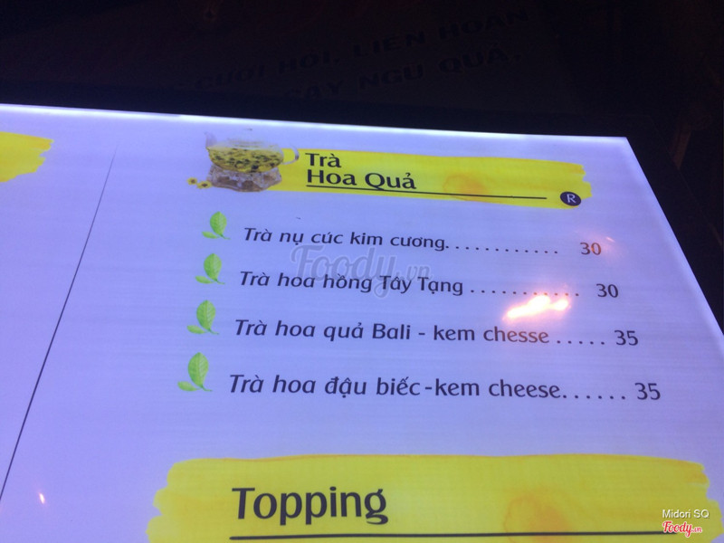 7.0Dance TeaLúc quán mới mở có chương trình check in fb được free 1 ly trà đen macchiato.Thực ra ,Dance Tea chỉ là 1 chiếc xe đẩy có ghế nhựa ngồi xung quanh vỉa hè thôi.Vị trí k đẹp lắm do ở dưới cầu vượt,đi nhanh khách cũng lười dừng lại mua. Được free vơi điều kiện phải ngồi lại uống,k cho mang đi?!!!! K hiểu luôn,uh thì cũng ok,ngồi lại chút. Trà đen uống ok ,k quá đắng dễ uống,lớp macchiato vẫn chưa hoà tan hết được đường,còn lợn cợn,vị hơi ngọt,uống tạm được.Chị mình thì k thích lắm,bảo uống giống vị sữa bột.Xe đẩy nhỏ nhưng menu cũng đa dạng các loại nước,giá từ 25-30k ,k đắt nhưng cũng k phải giá bình dân ...Xem thêm