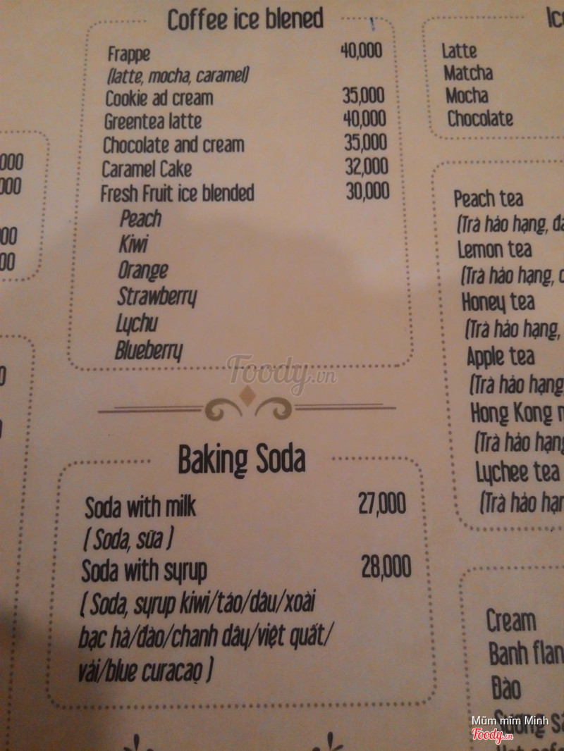 4.4Thất vọngLúc mới khai trương thì giá bánh plan mix, yaua trái cây là 40k. Nc thì 35k cũng kha khá ròi. Vừa mới đông khách khai trương hơn tháng là đồng loạt tăng giá các món lên hết 10k. Nc lên 45k, bánh plan mĩ 50k. Trong khi thực ra yaua chỉ yaua bỏ chút đá thêm trái cây. Bánh plan mix là bỏ 1 cái bánh plan lên đá bào thêm 1 ít vài miếng trái cây xung qanh thì 50k. Giá tiền k phù hợp ...Xem thêm