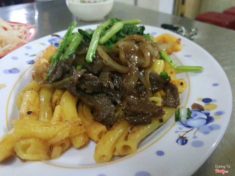 7.6Nui xào bò 28kTrời mưa quay lại quán bột chiên vì đột nhiên thèm kinh khủng. Mình đi 2 người, mình gọi bánh hẹ không trứng, bạn mình ăn nui xào bò. Bánh hẹ vẫn ngon như ngày nào, nhưng vẫn chẳng bao giờ có tóp mỡ trừ khi mình nhắc trước. Vẫn 7k một bánh, dĩa 2 bánh 1 trứng thì tới 20k, k hiểu sao 1 trứng lại thêm 6k nhỉ :3. Nui xào khá ngon, phần nui bên ngoài giòn luôn á, thơm lắm, mà hơi ít, bò cũng mềm, dĩa 28k mình thấy ngon nhưng giá hơi cao xíu. Mấy ngày mưa cộng 2 lô cốt nữa nên đường này hay ngập kinh khủng. ...Xem thêm
