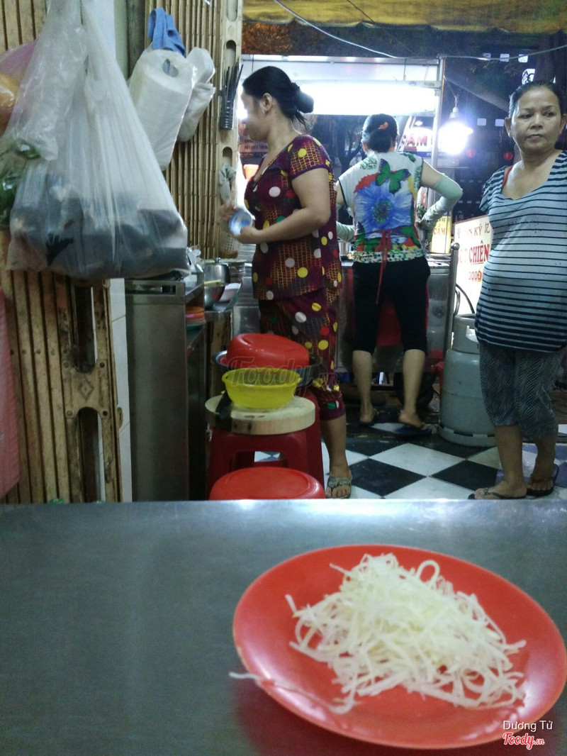 9.0Bánh hẹ siêu ngonỞ đây làm bột chiên, bánh hẹ đều rất ngon nha, bánh hẹ thơm, giòn, vừa đủ độ dai. Miếng bánh cũng bự, một chiếc cắt ra khoảng 5,6 miếng vừa miệng, topping rất nhiều tỏi phi tóp mỡ hành lá, cực thích. Ăn kèm đu đủ chua với nước tương là siêu ngon luôn. Mình k thích ăn trứng nên kêu 1 dĩa 2 bánh giá 14k. Tính ra giá rẻ ngang mấy xe bánh hẹ lề đường mà chất lượng hơn hẳn. Mình thấy chỗ này làm bột chiên bánh hẹ ngon nhất khu Q11 rùi. Ngoài ra còn có bánh tôm củ đậu, bánh khoai môn, há cảo, nước sâm.... Bột chiên một dĩa 18k cũng chất lượng lắm. ...Xem thêm