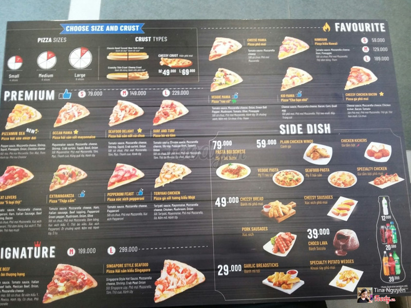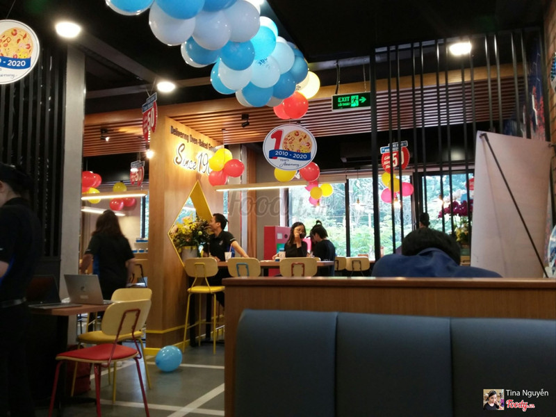 8.6Pizza ngonBữa khai trương mình có đến ăn thử. Nhân viên phục vụ lịch sự , nhanh nhẹn. Không gian nhỏ nhưng khá xinh , ghế ngồi êm ái , có lầu , có bồn rửa tay cho khách. Có dãy ngồi ngay sát cửa kính nhìn xuống đường ngắm cảnh. Gửi xe free có chú bảo vệ trông xe rất dễ thương nhiệt tình. Mình mua mang về 1 pizza gà phô mai size S và 1 chai nước ngọt , ăn thấy êm :)) ( vị rất ngon ) Lần sau sẽ ghé lại dùng bữa tại chỗ để chill với cái không gian mới này nữa. ...Xem thêm