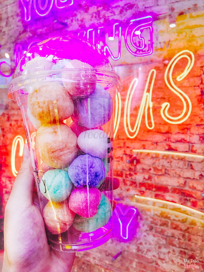 7.2Kẹo bông gòn đủ hình siêu cuteĐi dạo dạo khu phức hợp Zone 87 thấy mấy chị ngồi quay quay cái kẹo bông gòn đủ màu xinh ơi là xinh, cũng tấp zô mua mấy cây ăn. Kẹo có đủ hình luôn nha: hình trái tim, cầu vồng, bông gòn uống với nước, kẹo bông gòn viên v.v...Có loại không có hương và không hương luôn nha. Hương thì gồm có: matcha, strawberry, cacao, cinnamon. Giá thì đương nhiên là cao hơn mấy xe hàng rong hồi nhỏ hay ăn rồi. Dao động từ 30k - 50k tùy loại nha. Ly bông gòn viên tròn thì là 50k/ly nè Bông gòn trái tim + cầu vồng cũng 50k luôn Riêng ly mình gọi loại 60k, lúc uống thì dầm bông gòn vào ly uống vui lắm luôn. Chịu khó ăn nhanh nhanh xíu nha, tại thời tiết của mình nóng nên hơi nhanh tan nhé. ...Xem thêm